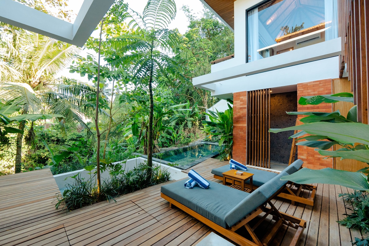Nature & Wellness Sanctuary Experience the best of Bali in our personal home. Tucked away in the wilderness, you’ll enjoy total seclusion with the soothing sound of the river as your soundtrack, yet you’re only minutes away from the nightlife and beaches of Canggu. The Highlight: A spectacular 50m² private deck suspended over the river, featuring: Private Sauna & Ice Bath Massage tables for on-site treatments The perfect balance between tropical nature and vibrant Bali life.