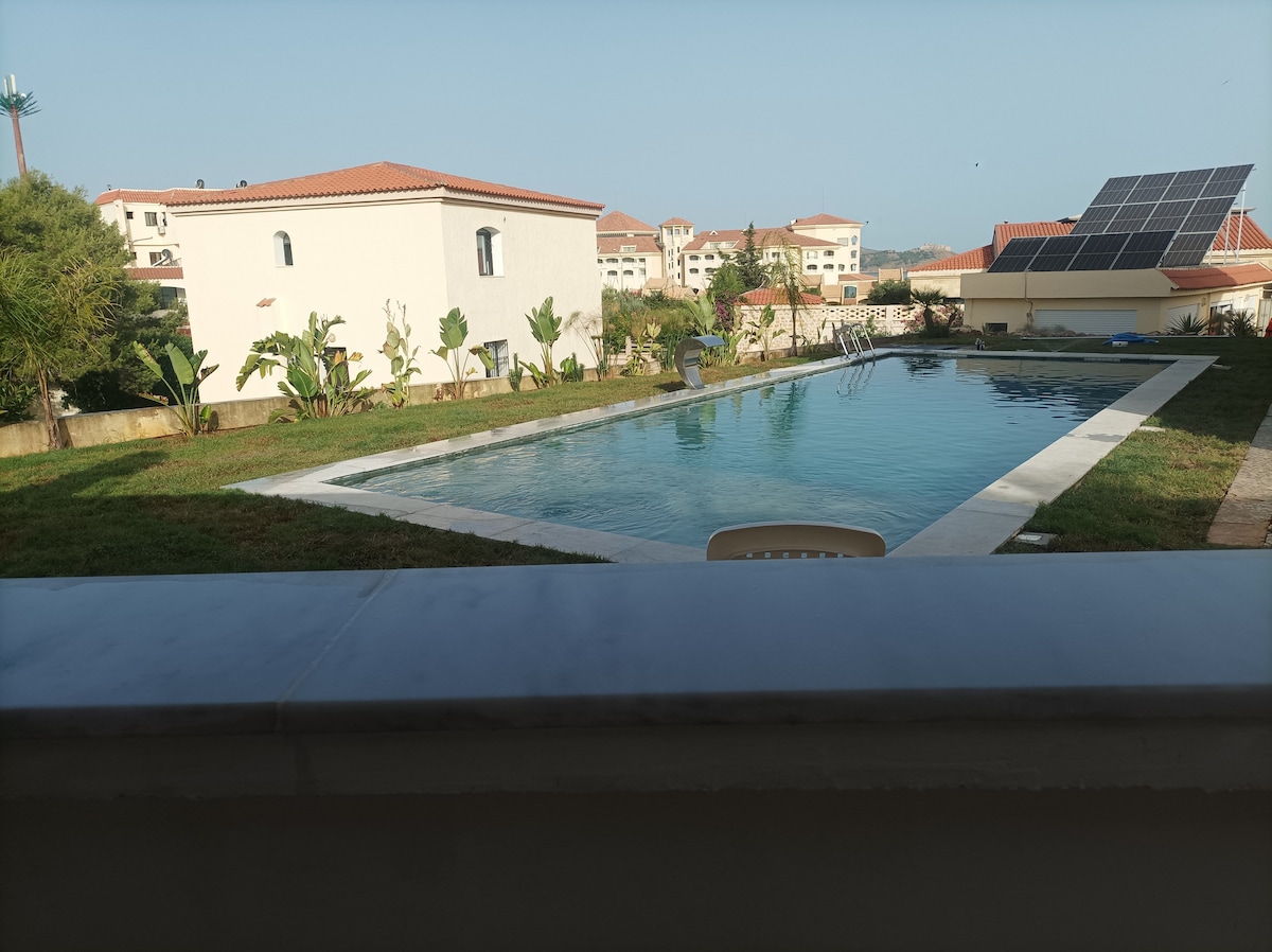 Villa Bel Azur, located in a private residence in Tabarka, overlooking the Gulf of La Cigale, offers panoramic views of the sea, the golf course, and the Genoese fort. Spacious, bright, and elegant, it features a large living room with a fireplace, three comfortable bedrooms, a modern Ixina kitchen, and superb terraces with sea views. Housekeeping is included, with the option of preparing meals at the guests' expense. The swimming pool is currently being renovated and will be available soon.