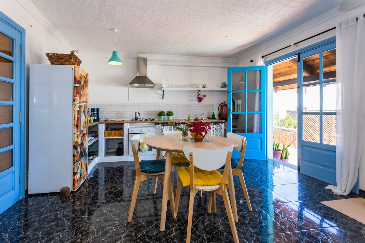 Nur 200m vom Meer entfernt und doch geschützt vor dem Wind, befindet sich Casa Kalisat „Haus Glück“. Umgeben von atemberaubender Vulkanlandschaft, dem klaren Sternenhimmel bei Nacht, der Kraft der Gezeiten, findet man Ruhe und Naturverbundenheit in schöner Wohnatmosphäre. Im ganzen Dorf darf man unbekleidet sein, FKK ist hier gern gesehen, aber kein Zwang. Es gibt einen Supermarkt in Charco und mehrere gute inseltypische Restaurants in Mala und Arrieta, wo sich auch ein langer, flacher Sandstrand, geeignet für Kinder und Surfer befindet. Eine geschützte Badestelle(200m) aus natürlichem Lavagestein, ermöglicht ganzjährig das Baden bei Hochwasser, ein Felsen(500m) mit Trittleiter ist für Schwimmer und Taucher der perfekte Zugang zum Meer. Mehrere Wanderpfade nehmen hinter dem Haus ihren Anfang. Der schönste führt direkt zum Ausflugspunkt „Jardin de Cactus“, des bekannten Inselkünstlers César Manrique.