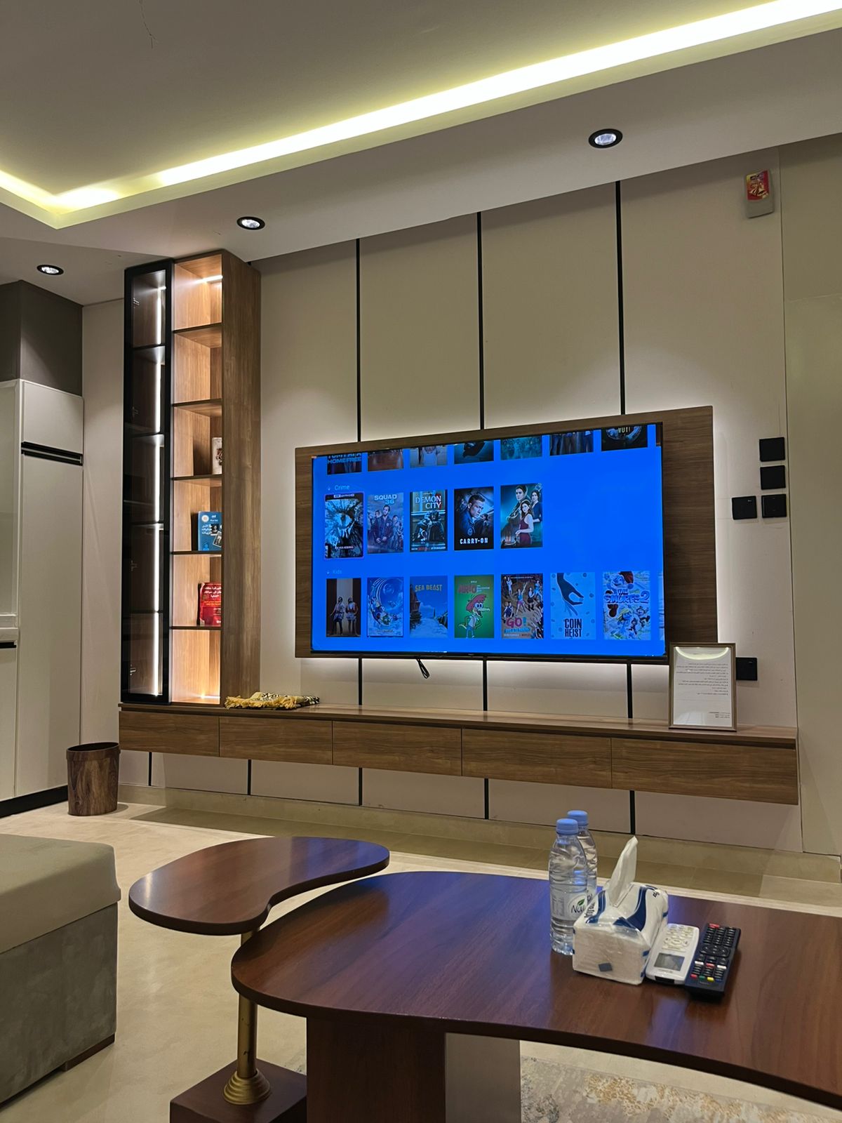 Una estancia lujosa y cómoda en el corazón de Tabuk, con un diseño moderno que te ofrece los más altos niveles de comodidad y privacidad. • Ubicación: Murooj Al-Amir – Tabuk📍 Una calle animada cerca de todos los servicios • • Cerca de la carretera de circunvalación principal • A 5 minutos del centro comercial más grande de Tabuk • A 15 minutos o menos del aeropuerto • Ubicación tranquila y cómoda # Detalles # • Habitación elegante • Salón cómodo • Baño • Cocina equipada + té • Entrada inteligente • Internet de alta velocidad. • Ascensor moderno • Diseño moderno y lujoso Entretenimiento 🎬 La suscripción está disponible para todo tipo de películas, series y partidos
