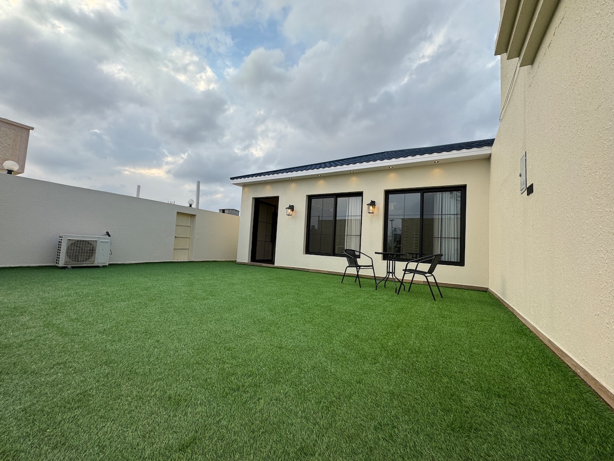 Relájate en este alojamiento tranquilo y elegante. Suite de lujo con vistas panorámicas completas al jardín, con moreras, rosas, rosas y vides, servicio de entrada inteligente, además de una gran pantalla moderna con tecnología UHD 4K con suscripción al servicio iptv, todos los canales del mundo, además de los canales deportivos Bein, Saudi Sports, showtime, Netflix y todas las películas y series. ((y la Copa del Mundo😍)) Hay una mezquita cerca de la vivienda. Cerca del parque Al-Radf, restaurantes, mercados y cafés de lujo. Hay un guía turístico para proporcionar a los huéspedes todos los lugares que vale la pena visitar.