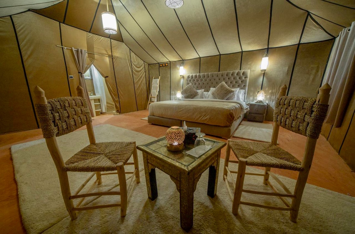 Escapada de lujo en tienda triple en un campamento en Merzouga