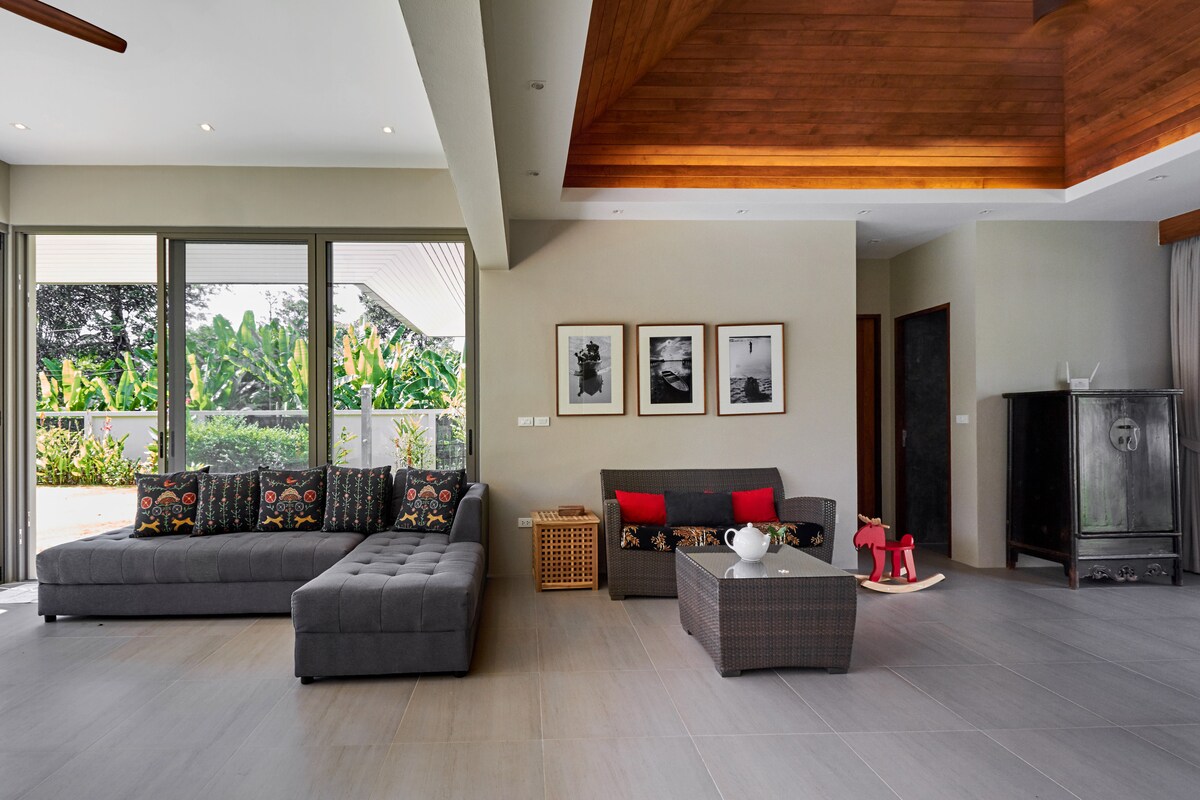 Relájate en Villa Anicia 150 m² 3BR/2.5BA casa independiente en Mai Khao Phuket . Ubicado en una calle tranquila junto a Thepkrasatri (402) Road, ofrece una escapada tranquila de las zonas más concurridas de Phuket. Perfecto para viajeros que buscan descanso y calma que valoran la paz, la comodidad y un ritmo de vida más lento. Esta casa cuidadosamente amueblada combina un estilo moderno. Con amplias salas de estar de planta abierta, una cocina totalmente equipada, dormitorios acogedores y un entorno tranquilo, es ideal para familias, parejas o trabajadores remotos.