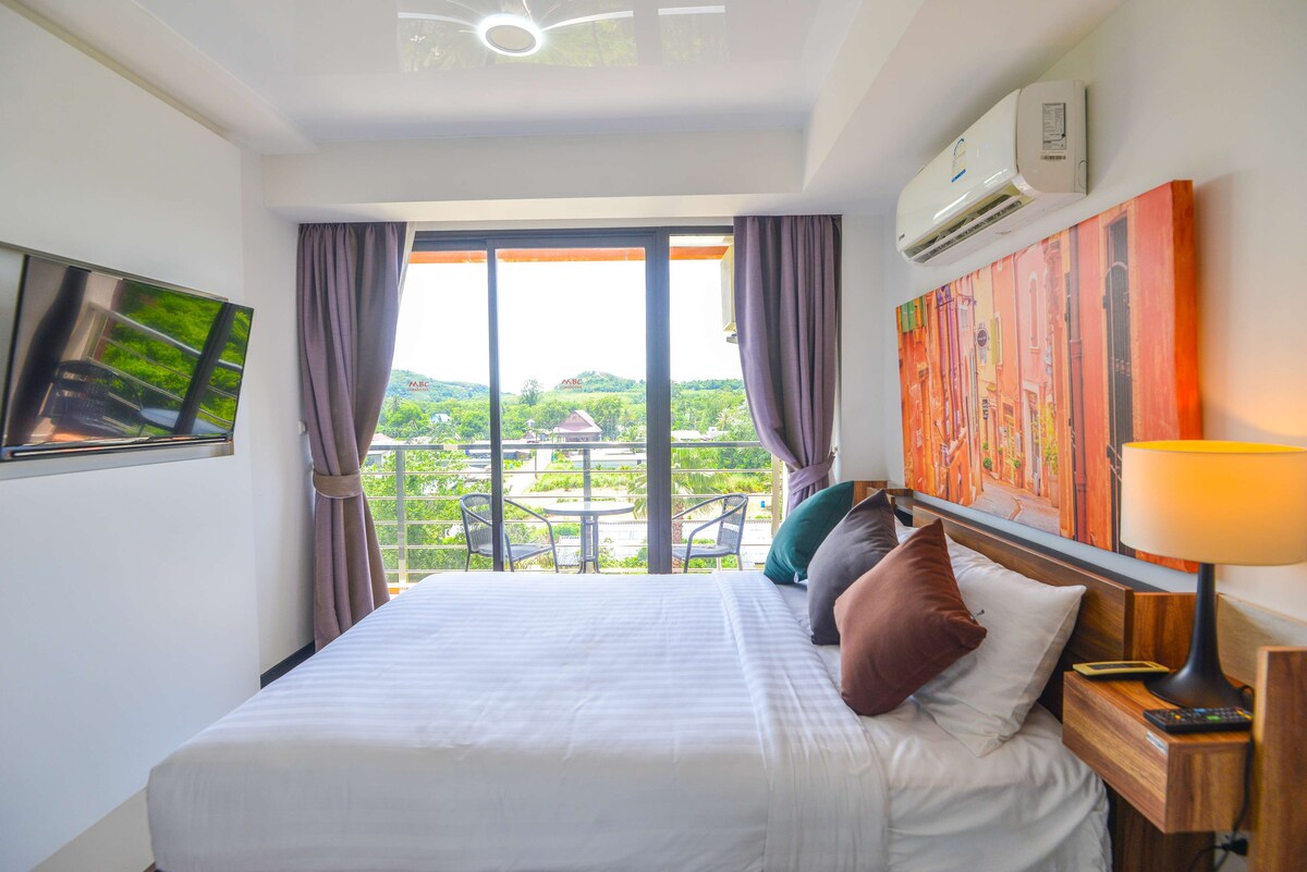 Encantador apartamento ubicado a solo 800 metros de la playa Mai Khao y a 9 km del Aeropuerto Internacional de Phuket. Perfecto para parejas o viajeros solitarios, mi apartamento ofrece comodidad y conveniencia con comodidades modernas. Te encantará el gran balcón con vistas a la vegetación y la comodidad del dormitorio separado con su baño privado. Y disfruta de un refrescante baño en la piscina del lugar y relájate después de un día de exploración :-) Ubicado en una zona tranquila, ¡este es un lugar ideal para una escapada relajante a la playa!