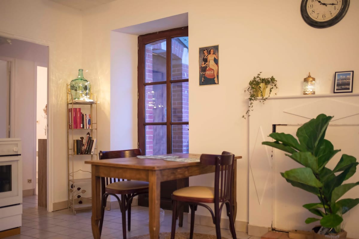 ¡Bienvenido a nuestra casa renovada a nuevo, tranquila, a 10 minutos del centro de la ciudad, del parque de exposiciones y del aeropuerto! Muy cómodo, decoración cuidada, en un oasis de vegetación, ideal para una escapada turística o una estancia profesional. Tiene capacidad para hasta 4 personas. Aparcamiento privado. Junto a nuestra casa de campo, casa independiente de 65 m2: 1 salón luminoso, en la planta superior 1 dormitorio para 2, 1 altillo con 1 sofá cama de 2 plazas, 1 baño con ducha, 1 terraza de 20 m2 y 1 jardín