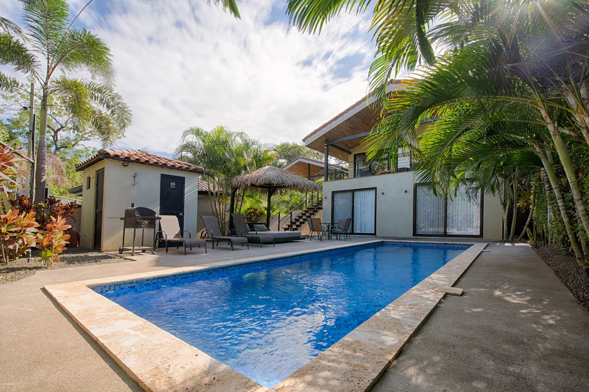 Welcome to Casa miel, A modern, fully Equipped Villa in a peaceful location - Just about 5 minute walk to Tamarindo Beach. Perfect for families or friends seeking comfort, relaxation and the best of Costa Rica. What you'll Love: - Specious 3-bedroom home with modern design. - Large privet pool & shaded rancho. - Quiet, central location - walk to beach, shops, cafes & restaurants. - Free WiFi - house & pool area. - A/C in the living room and in every bed room