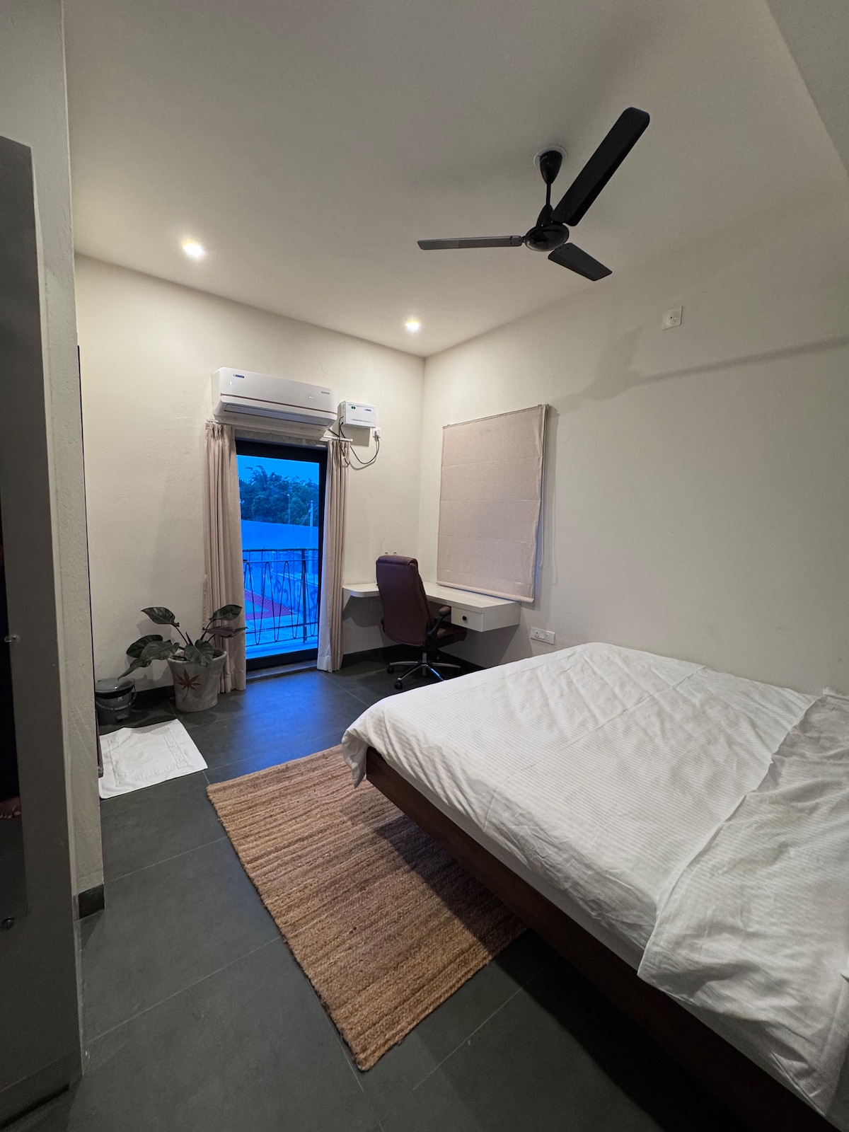 Experience serenity in this spacious 3BHK villa at Shubh Enclave, designed for families, founders, and creatives. Nestled beside lush greenery and a peaceful lake, ample sunlight and fresh air create a sanctuary for spaciousness, stillness and silence ✔ 3 king-size bedrooms w private attached washrooms ✔ Spacious living room with 55" Smart TV ✔ 2 airy balconies ✔ Fully equipped kitchen: microwave, stove, fridge, mixer utensils, Washing machine ✔ Daily cleaning available, cook on request