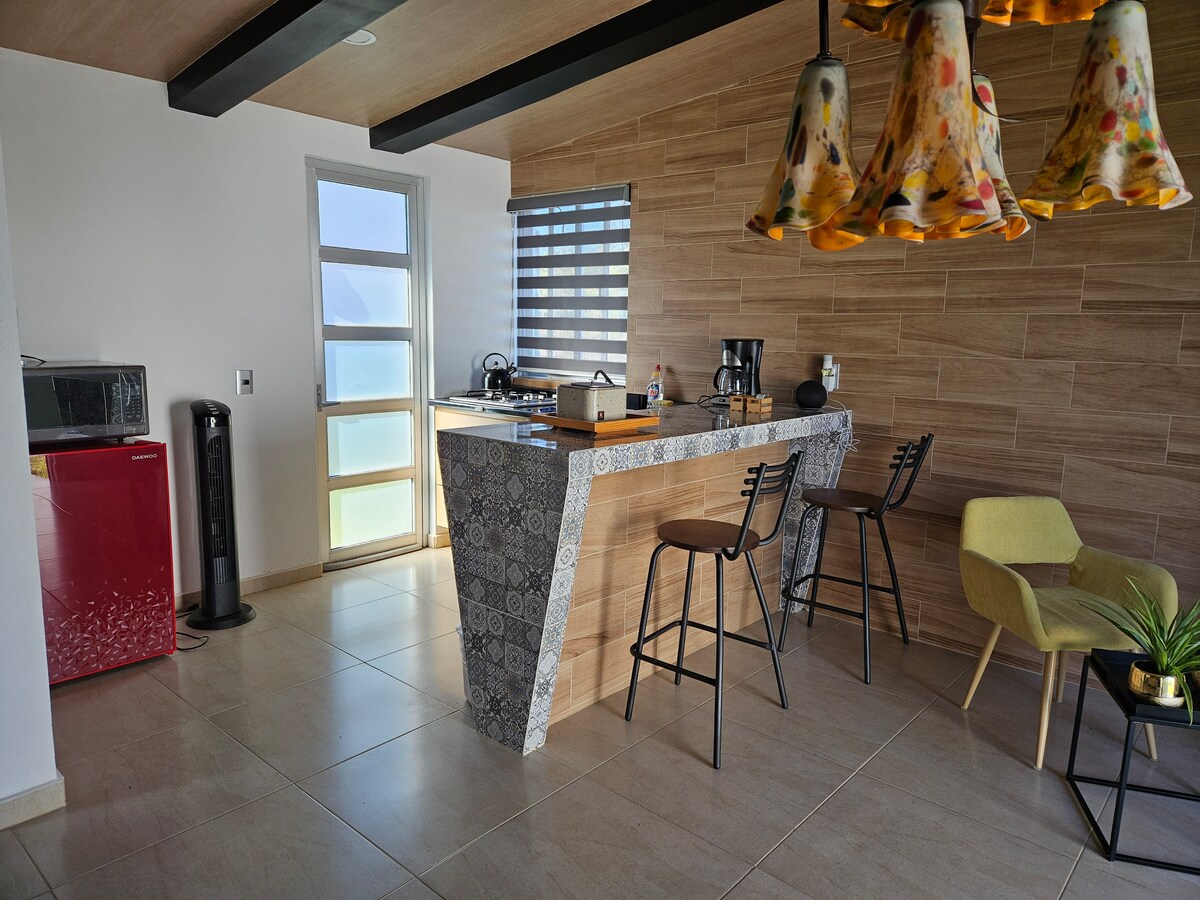 Es un espacio limpio y confortable con una terraza digna para disfrutar de un buen café o simplemente apreciar la naturaleza, el alojamiento se encuentra en uno de los barrios que hasta hace no mucho era una comunidad rural, cuenta con todos los servicios, ademas de poder disfrutar de un barrio que se ha detenido en el tiempo y conserva aun la costumbre de personas disfrutando de las calles fuera de su casa así como el de los niños jugando en la calle.