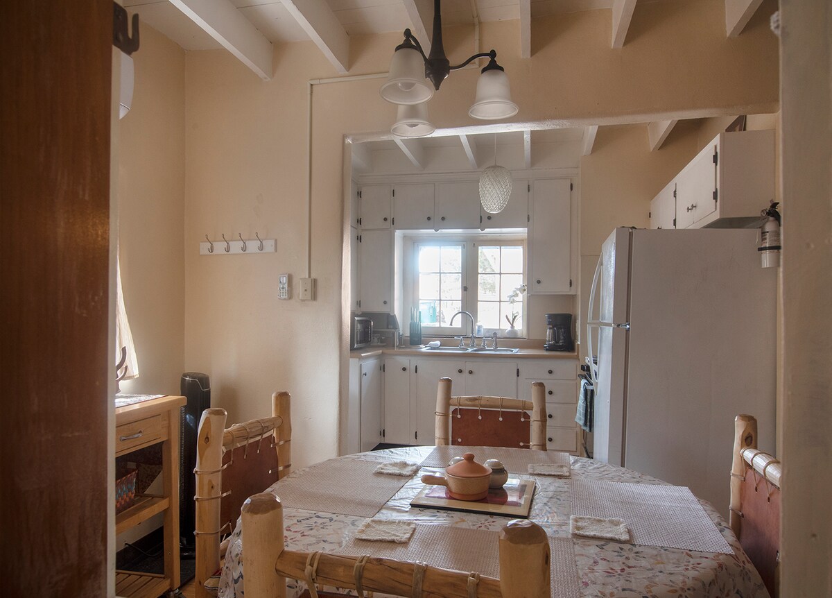 ¡EL LUGAR PERFECTO PARA UNA ESCAPADA! Una unidad de un dormitorio para no fumadores con mucho carácter. Pasea hasta la plaza y los restaurantes. Disfruta del patio privado junto al dormitorio o del precioso patio con una relajante fuente y muchos bancos. Ideal para leer, pensar o meditar. ¡Muchos huéspedes han estado «trabajando desde casa con una vista diferente»! Se admite un perro familiar (menos de 25 libras) y debes consultarlo con antelación. El acogedor paraíso es una combinación del ambiente de Taos con toques contemporáneos.