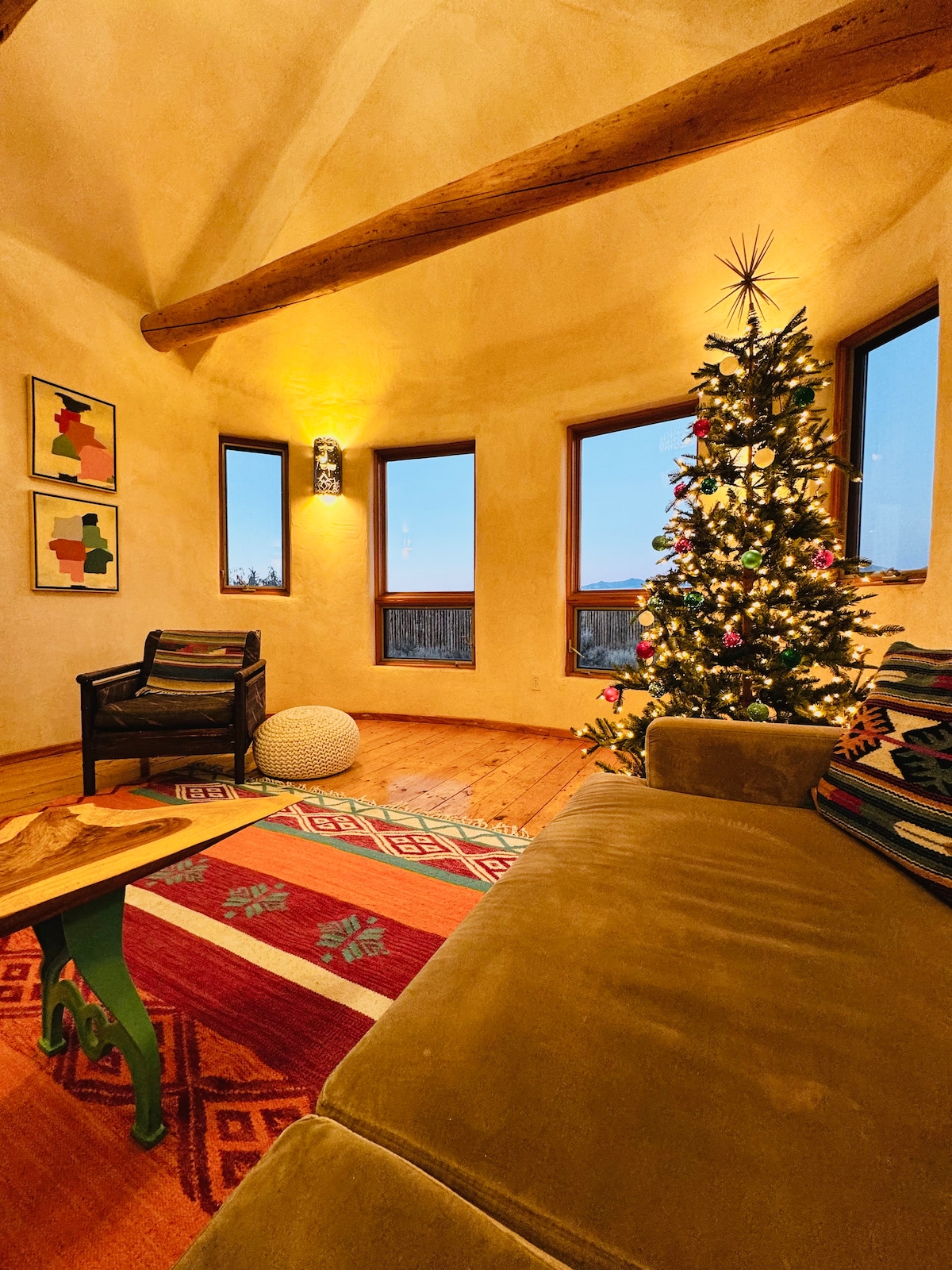 Nuestra moderna casa de tierra es un nido acogedor construido por artesanos que ofrece a sus visitantes luz, espacio abierto y color. Tiene un entorno tranquilo y privado con todo lo necesario para que tu estancia sea cómoda y, con suerte, inspiradora. El aire libre es la otra mitad de esta casa, creando un anfiteatro envolvente de jardines, pájaros, árboles y una hamaca. Más allá de este nido privado hay vistas de 360 grados de las montañas Sangre de Cristo, la garganta del Río Grande, espectaculares puestas de sol y kilómetros de senderos para caminar y andar en bicicleta.