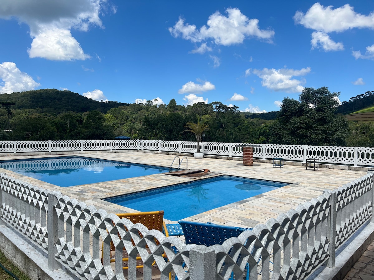 El lugar ideal para ti y tu familia, casa completa y bien equipada. ¡Más de 230 comentarios positivos! Internet de 400 MB - fibra óptica. Hermosa y cómoda granja rodeada de vegetación y con diversas actividades para la familia, como senderos ecológicos, 3 lagos y exuberante bosque de reserva. Seguridad y conserje las 24 horas... Gran lugar para descansar, relajarte y disfrutar de la naturaleza. Chimenea... Piscina privada, espacio gourmet con barbacoa, estufa de leña, c. muñecas. Se admiten mascotas, pero máximo 2.