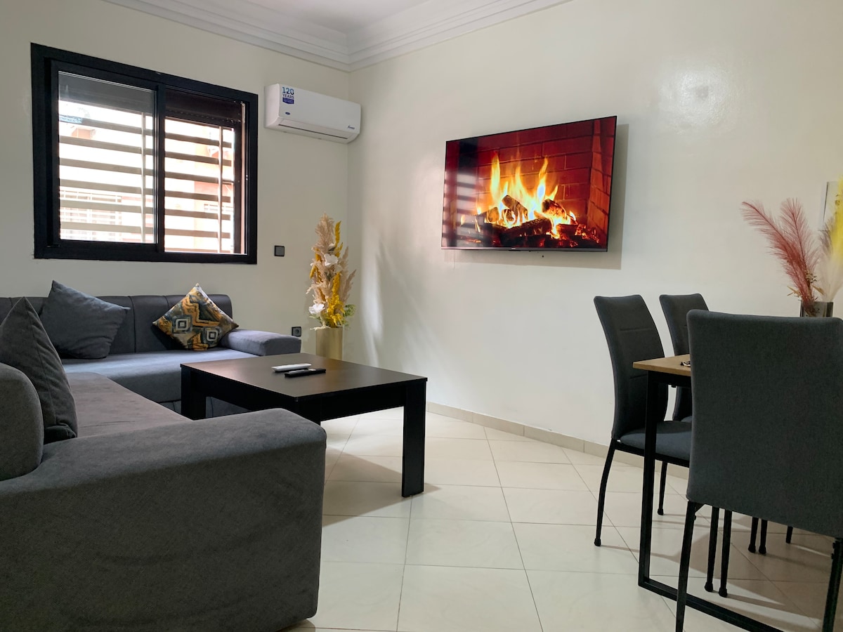 Séjour moderne, calme et confortable à Marrakech 🇲🇦, à seulement quelques minutes de Guéliz et du centre-ville. Salon lumineux 🛋️, quartier calme 🌿, climatisation ❄️, TV avec Netflix 🎬 et connexion fibre haut débit ⚡ Équipements premium, idéal pour un séjour sans souci ✔️ Parfait pour profiter de Marrakech tout en restant proches du centre 📍 Convient aux séjours familiaux, professionnels ou prolongés.
