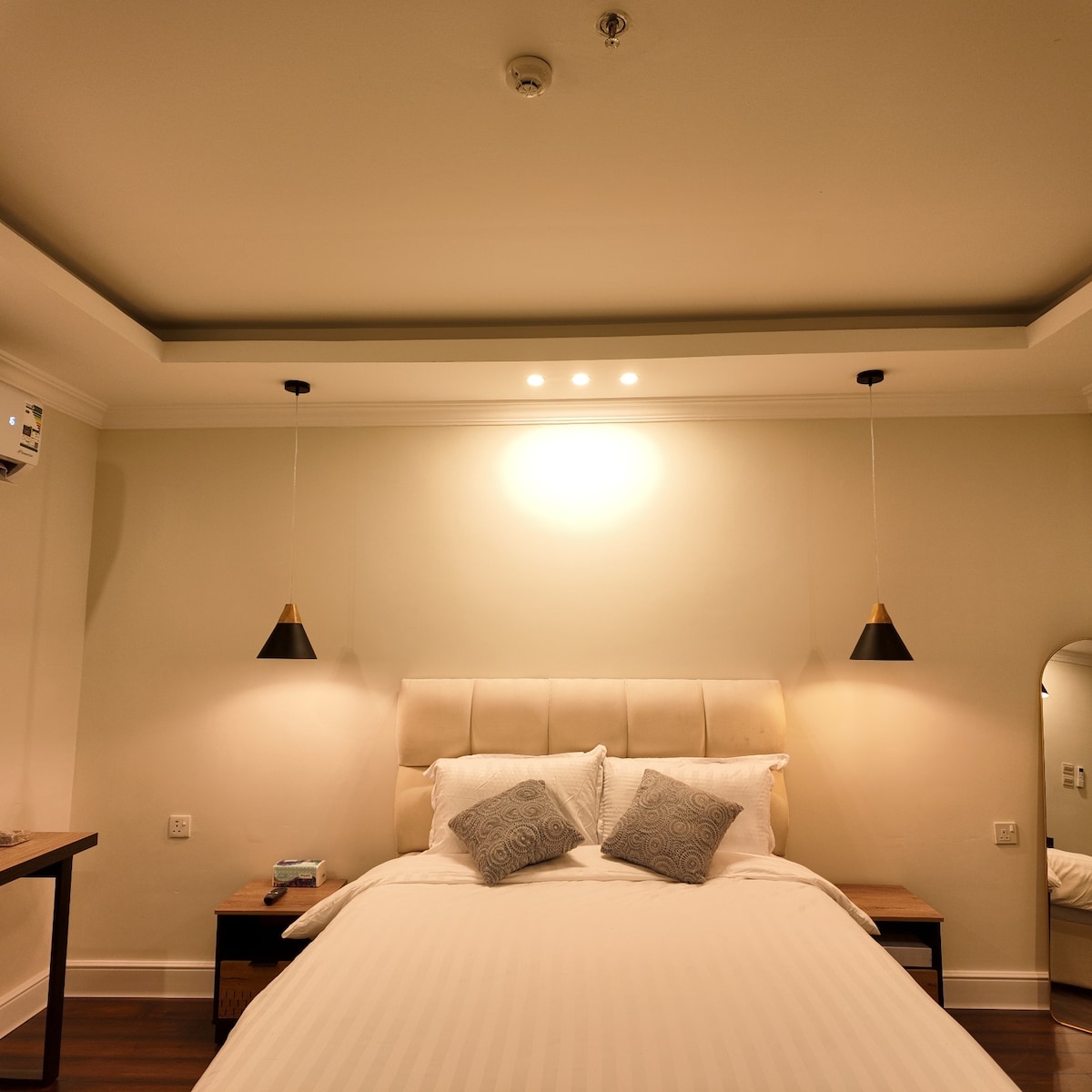 Relájate en este espacio único y tranquilo. Con una sala cinematográfica equipada con un sistema de sonido cinematográfico, un café, bebida y cocina para el cine, y después de completar el cine, te vas a dormir en una habitación equipada con una cama de hotel para dormir profundamente.