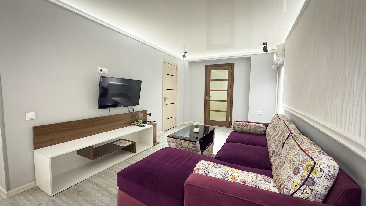 Beautiful modern renovated Canadian style unit. Comes with: - 90’ TV amazing for movie theatre experience - Full Sonos sound for amazing time while watching movie - Massive kitchen to cook - Location is 2 min away where president of Uzbekistan lives, means its a good and secure area - Down side is - its 20 min away from downtown/centre of the city - Has security camera outside of the Unit - Taxi really cheap in this area and easy to find by using Local Taxi Application on your phone