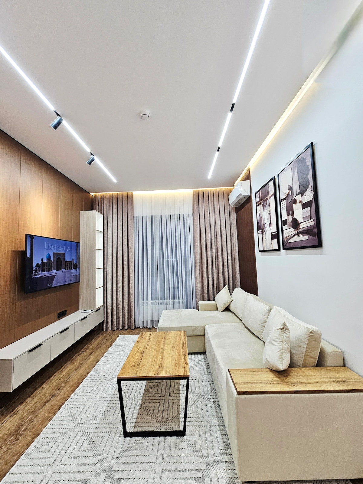 Hermosa unidad moderna de estilo canadiense renovada. Viene con: - Televisión de 90pies increíble para la experiencia del cine. - Sonido completo de Sonos para pasar un rato increíble mientras ves una película. - Cocina masiva. - La ubicación está a 2 minutos donde vive el presidente de Uzbekistán, lo que significa que es una zona buena y segura. - El lado negativo está: está a 20 minutos del centro/centro de la ciudad. - Tiene cámara de seguridad fuera de la unidad. - Taxi muy barato en esta zona y fácil de encontrar utilizando la aplicación de taxi local en tu teléfono.