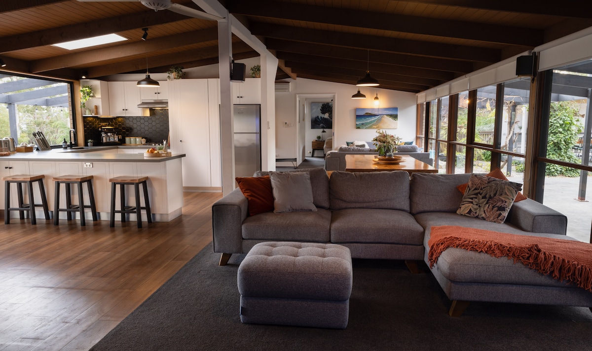 Take a breath and slow it right down. Frederick Lane is your cosy coastal escape, made for crisp winter days by the sea. Warm up in your private sauna, rinse off outdoors, and enjoy the fresh ocean air. Wander across the road to the beach, then come back and settle into the warmth. Move your body with quality workout gear, or unwind in the cosy courtyard, explore quiet trails and relax. Inside, a spacious kitchen and dining area await, plus smart TVs in both bedrooms for chilled nights in!
