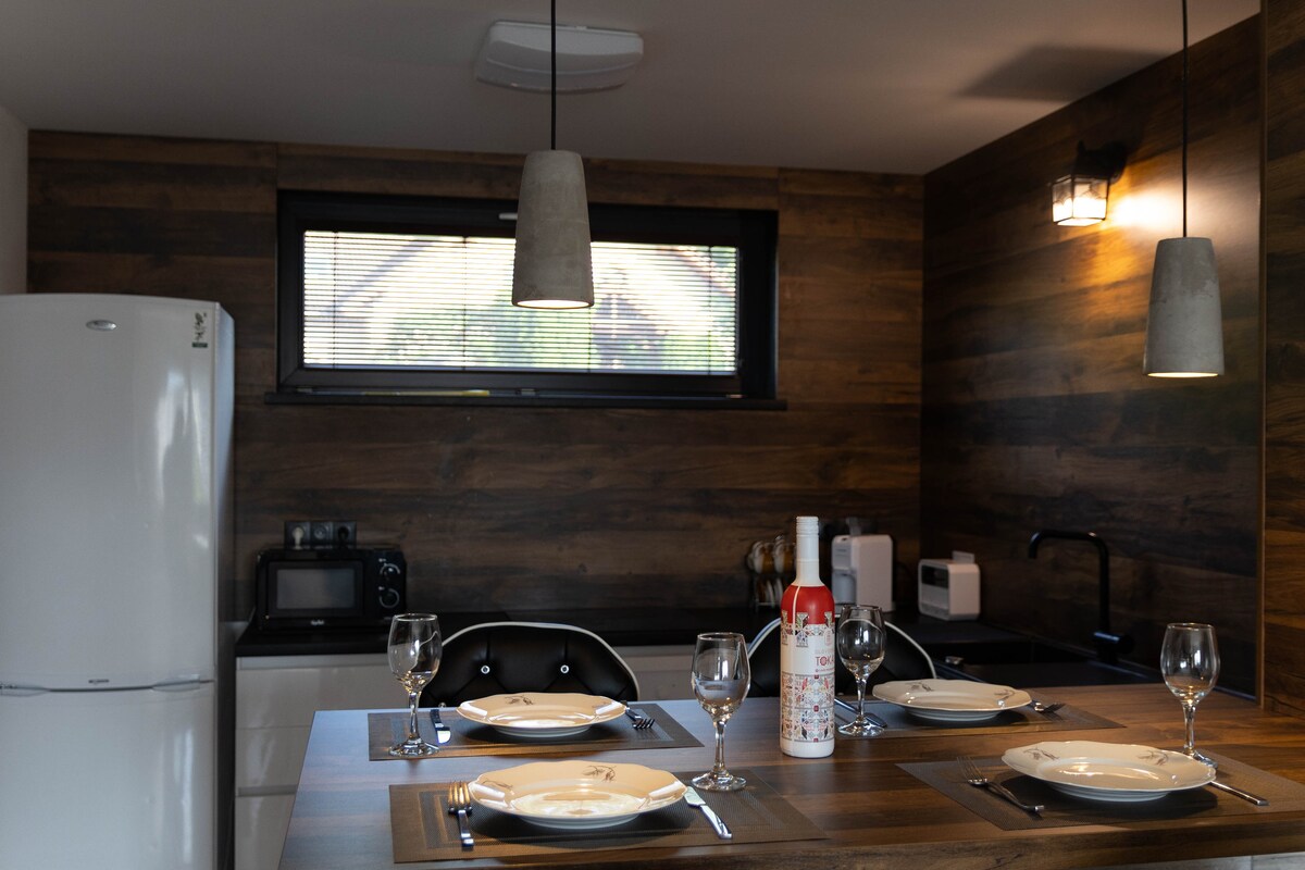 Nuestro apartamento está ubicado en el primer piso de Tamok Lifestyle Villa, es perfecto para una pareja que busca una estancia romántica, en un lugar que ofrece excelentes vistas a la montaña. Las hermosas montañas Tatra están justo detrás de las ventanas, por lo que puedes disfrutar de las vistas desde tu cama o balcón. Ofrece 20 metros cuadrados de espacio, consta de una sala de estar con cocina americana y un baño. El balcón es perfecto para tomar un café por la mañana en un día soleado:)