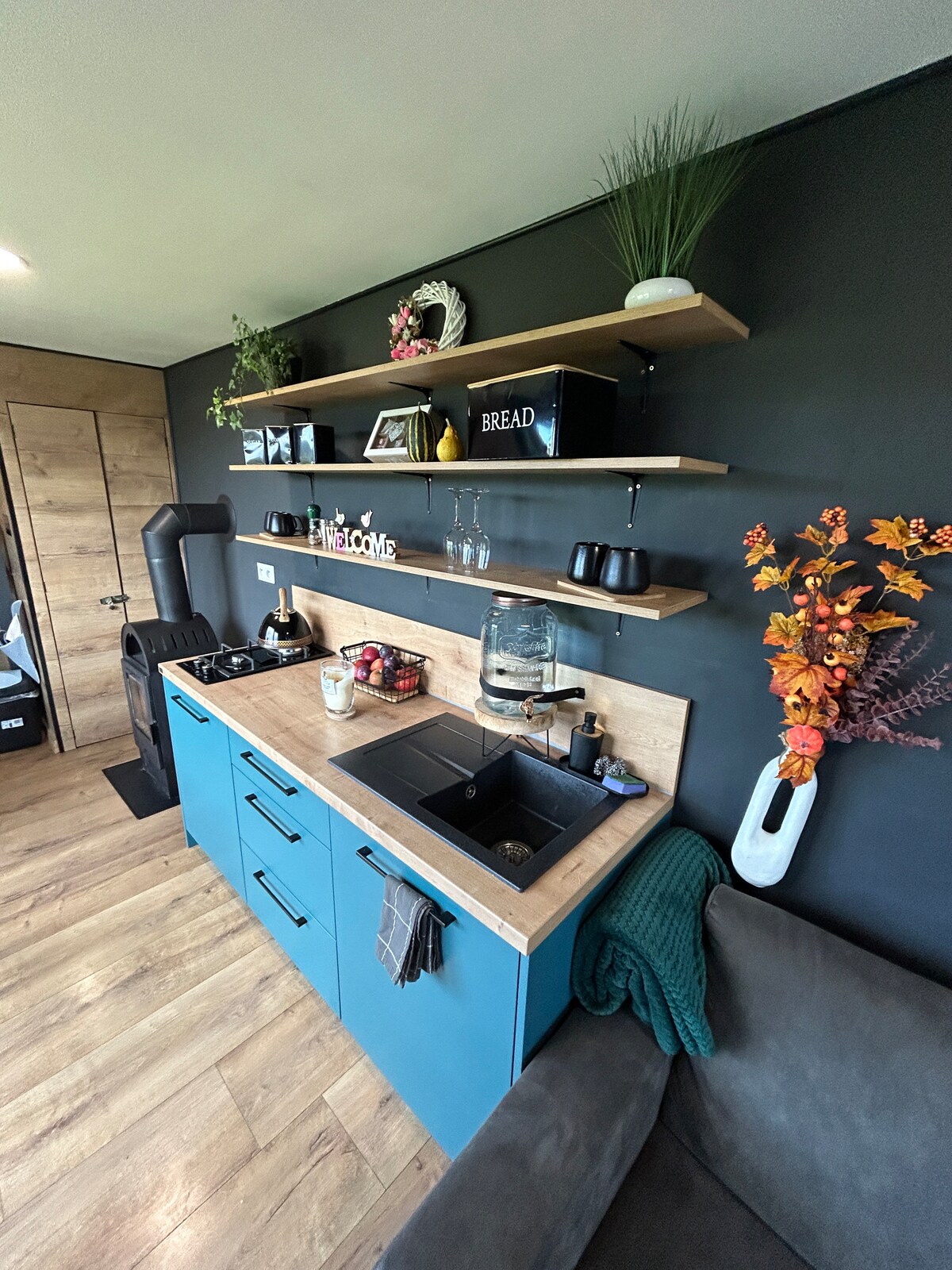Akár egy családnak, akár kisebb baráti társaságnak elegendő helyet nyújt. Ideális választás lehet 4-5 fő elszállásolására. Klímával, fürdőszobában padlófűtéssel és prémium fugamentes mikrocement burkolattal. A házban egy különálló hálószoba található, ahol egy kétszemélyes 160 cm széles francia ágy, galérián pedig két kisebb gyermeknek lett kialakítva hangulatos fekvő felület. A nappaliban - mely a konyhával alkot egy helyiséget - egy kihúzhatós kanapé, illetve egy fotel kínál pihenő helyet.