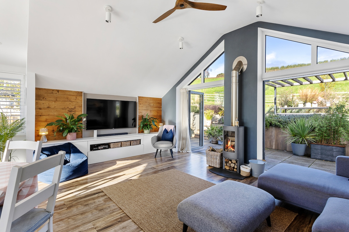 Casa rural contemporánea, cómoda y acogedora de 1 dormitorio, cerca de las playas de Exeter, Dartmoor y South Devon. Política de cancelación flexible. Maravillosas vistas, cama tamaño king, impresionante baño, cocina de planta abierta, sala de estar y comedor, con tu propia terraza privada para disfrutar de las vistas. Desayuno, cafetera Nespresso, Netflix y albornoces para tu uso durante tu estancia. Carga de vehículos eléctricos disponible (por favor, pregunta). Dirigido por un Superanfitrión. Consulta también The Burrow (nuestro otro anuncio) para ver nuestras evaluaciones de 5 estrellas.