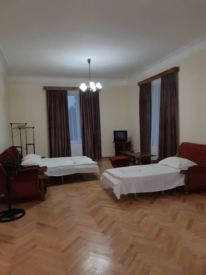 Esto es con 4 camas individuales. Tiene cocina y baño. Es ideal para un grupo familiar o de amigos. También puede acomodar a 15 personas, si tienen sacos de dormir. La superficie es de 1600 metros cuadrados, con nogales y ciruelos. A sólo 50 metros de la carretera principal y supermercado. 7-8 minutos en coche del restaurante. Maravilloso entorno, con bosque de hayas vírgenes y manantiales, con agradables rutas de senderismo. Maravillosa naturaleza y vistas a su alrededor. temperatura 10C grados más baja, luego en Telavi y Tbilisi.