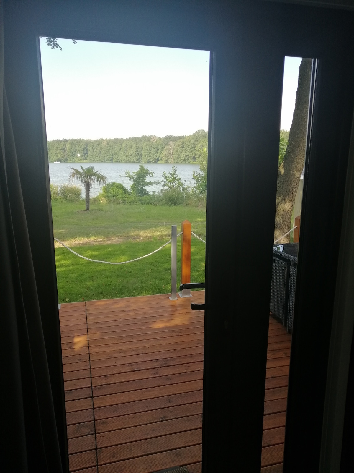 Vacaciones en Tiny House Seeperle1, una experiencia inolvidable. La Tiny House en el monasterio de Lehnin, justo al lado del lago del monasterio, ofrece la posibilidad de tomarse unas vacaciones durante todo el año sin sacrificar la comodidad. La pequeña casa es acogedora y está decorada con muy buen gusto en 32 metros cuadrados y tiene una gran terraza con vistas directas al lago.