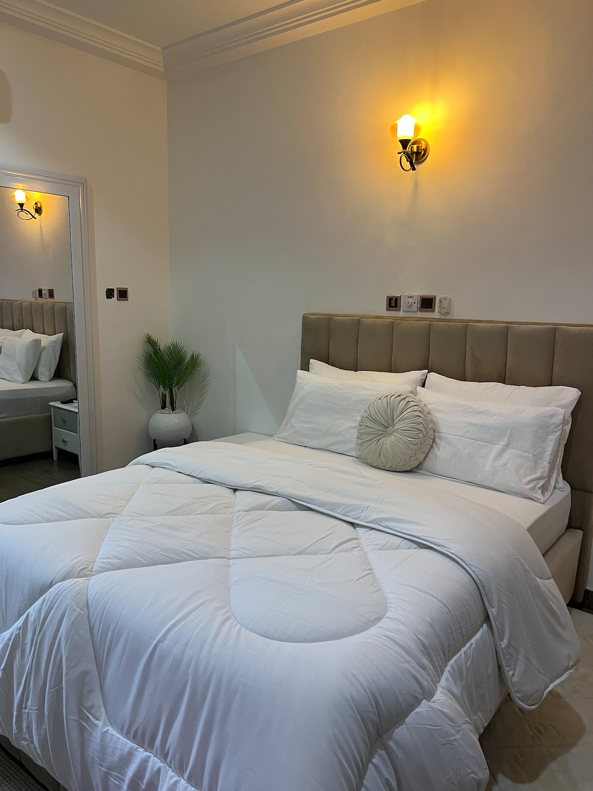 Disfruta de una estancia elegante y segura a solo 5-10 minutos del aeropuerto internacional de Kotoka y a 5 minutos a pie del centro comercial Accra. Este apartamento tipo estudio totalmente amueblado forma parte del emblemático complejo Signature, que ofrece: • Piscinas en la azotea y en la planta baja • Gimnasio totalmente equipado • Sala de juegos y biblioteca, cine • Estacionamiento gratuito • Seguridad y videovigilancia 24/7 • Canchas de tenis y baloncesto Perfecto para viajeros solitarios o parejas que buscan comodidad, conveniencia y una ubicación privilegiada en Accra.