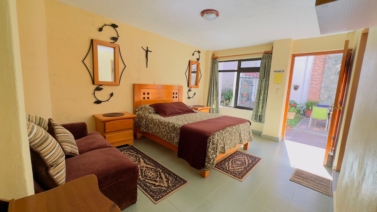 No querrás irte de este lugar tan único y encantador. Habitación doble con cama Queen Size. Bonita habitación con vista al jardín. Cuenta con: Wi-Fi WC Ducha Closet Plancha Mesita para planchar Secadora de cabello Set de toallas Caja fuerte Amenidades de baño.