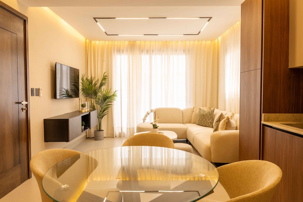 Minimalista y de lujo, apartamento ideal para todo tipo de visitas, viajeros, parejas, solteros o incluso negocios, tendrás un espacio dulce y cálido para sentirte como en casa cerca de muchos transportes públicos, centros comerciales, restaurantes, clubes nocturnos, cine, Monumento a los Héroes de La Restauración a 7 minutos, Hospital a 3 minutos, supermercados a 7 minutos. Lugar acuático donde podrías tener excelentes momentos en una comodidad de lujo Un hermoso vestíbulo, piscina, gimnasio y wifi