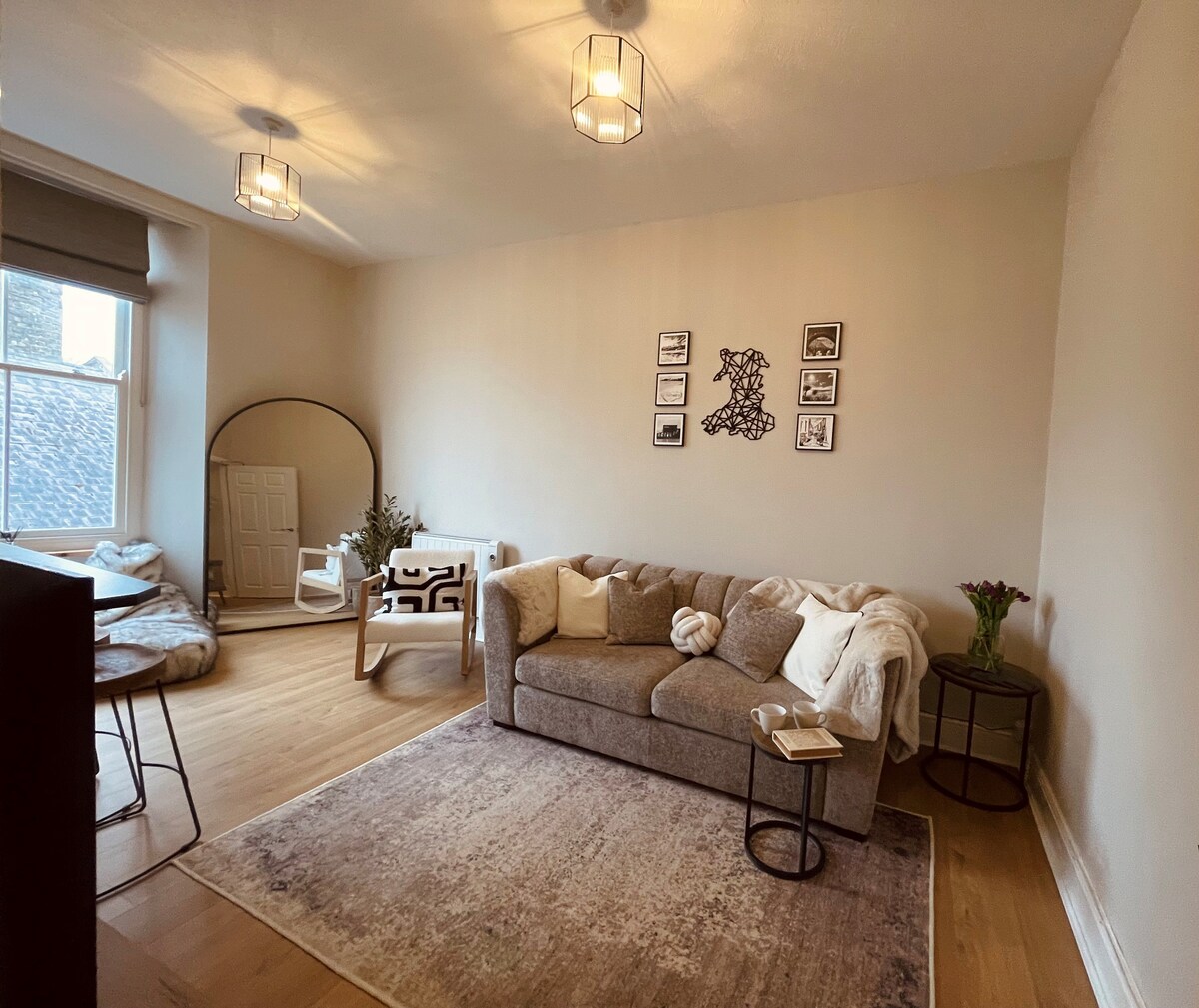 Bienvenido al apartamento sobre Loafley Bakery & Deli Co. en el centro de Tenby. Está perfectamente ubicado, luminoso y muy acogedor. Nuestro apartamento cuenta con una sala de estar, un dormitorio doble, una cocina bien proporcionada y un baño nuevo, todo en el último piso de la hermosa Llandrindod House dentro de las murallas medievales de la ciudad de Tenby. Estamos a menos de un minuto a pie de High Street y Tudor Square, y a un paso de las impresionantes playas de Tenby. Los aparcamientos locales también están a solo unos minutos.