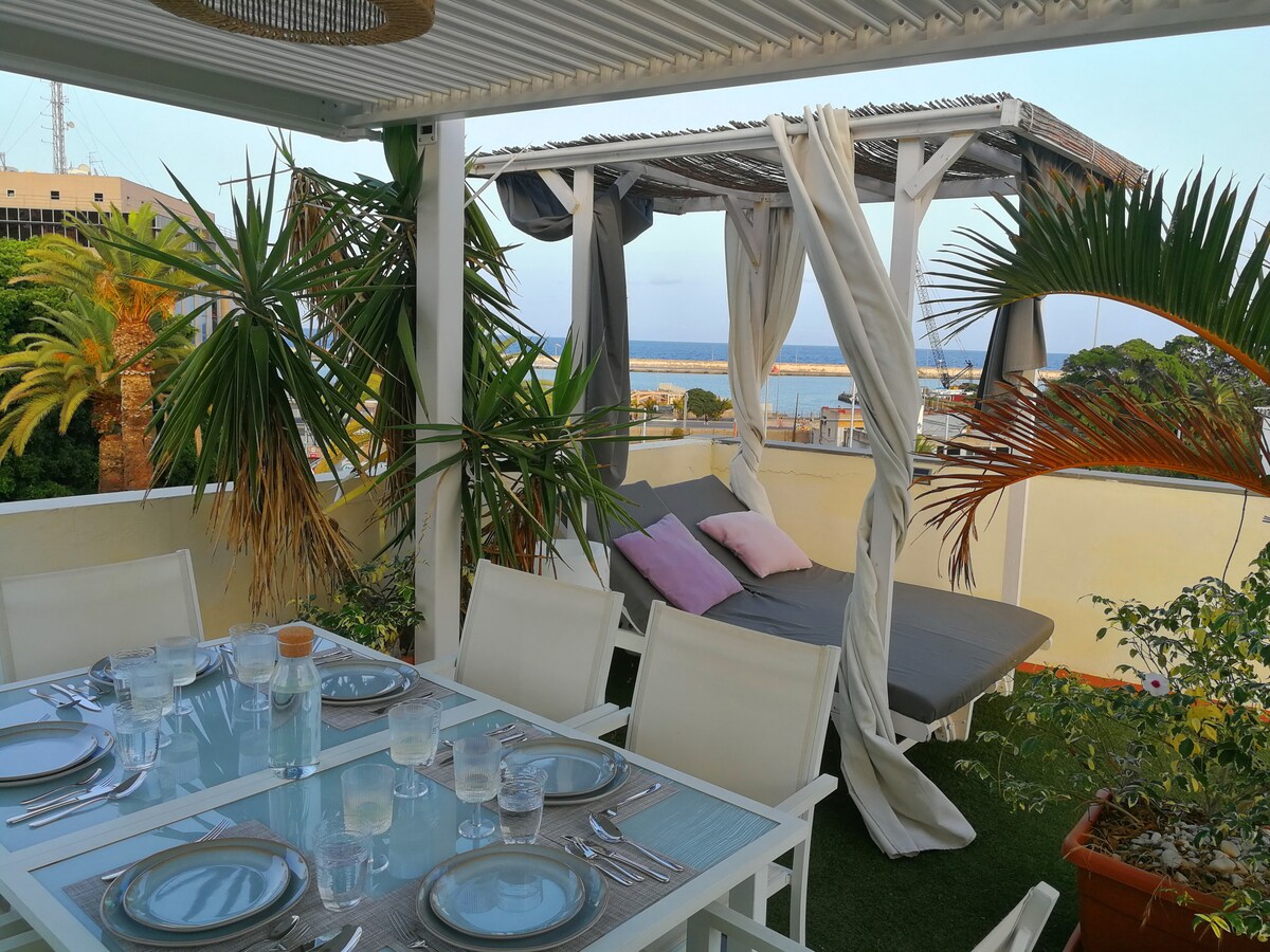 Situado en la zona antigua, y centro de la ciudad. La terraza, de acceso reservado al apartamento, ideal para el teletrabajo, es una oficina con vistas al mar, wifi (600Mb), ducha climatizada y nevera, para que no te falte de nada. También dispones de opciones para el relax. Acomodarte en una cama balinesa, hamacas o un barco de madera, desde donde disfrutar del sonido del puerto, las gaviotas, las campanas de la iglesia o el tranvía, con una parada justo al lado, otra de taxi y autobús.