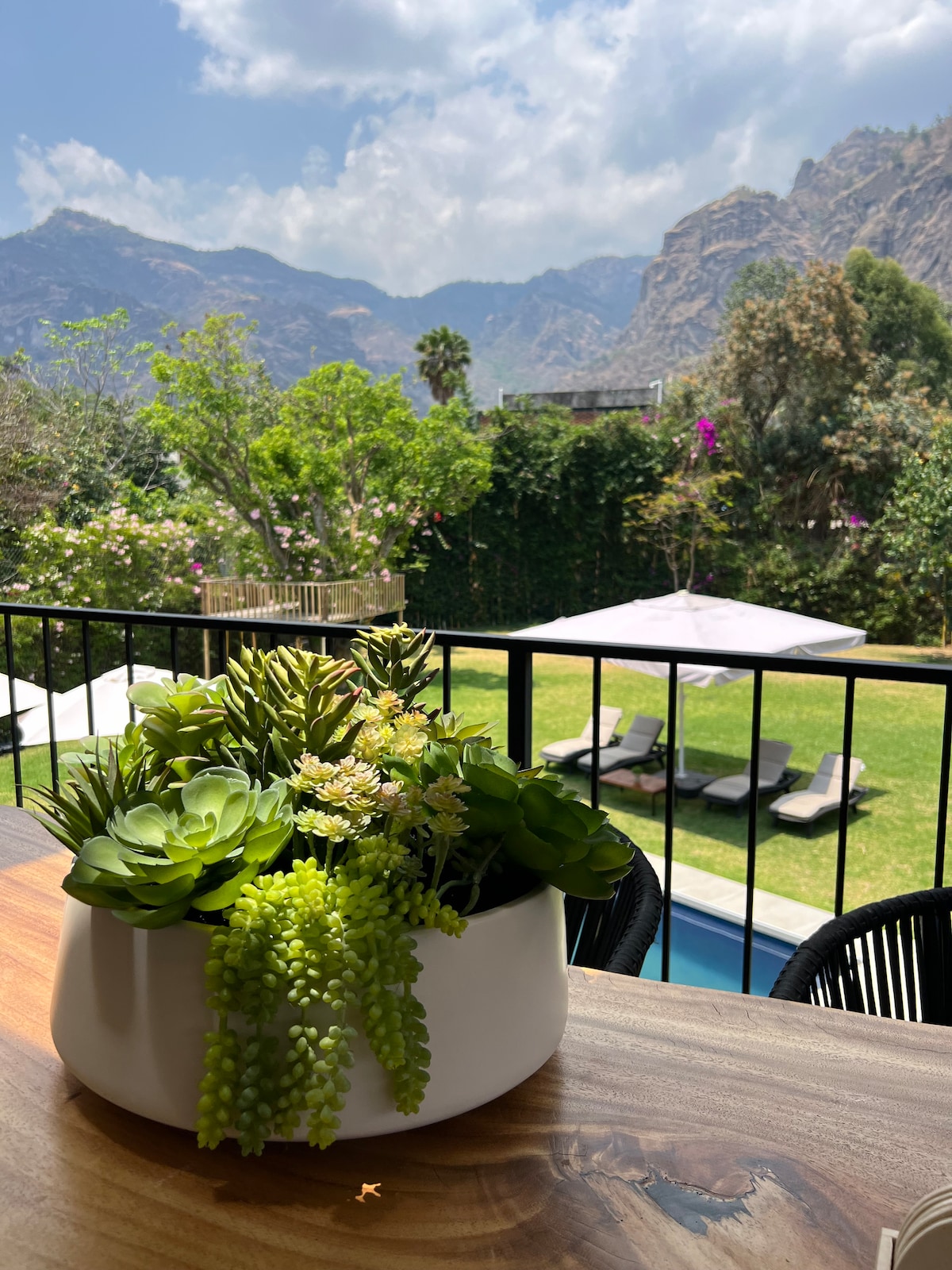 Ubicada en las afueras de la hermosa Tepoztlán, esta casa de vacaciones es el lugar perfecto para una escapada mexicana. Al llegar, te recibirá Cuco, nuestro encantador loro verde que vive en su gran jaula en el patio delantero. La hermosa decoración de la casa llena de arte mexicano te hará sentir como en casa. Las dos terrazas con increíbles vistas verdes del enorme jardín, la piscina y, lo más importante, las montañas de Tepoztlán, preparan el camino para unas vacaciones armoniosas y encantadoras.