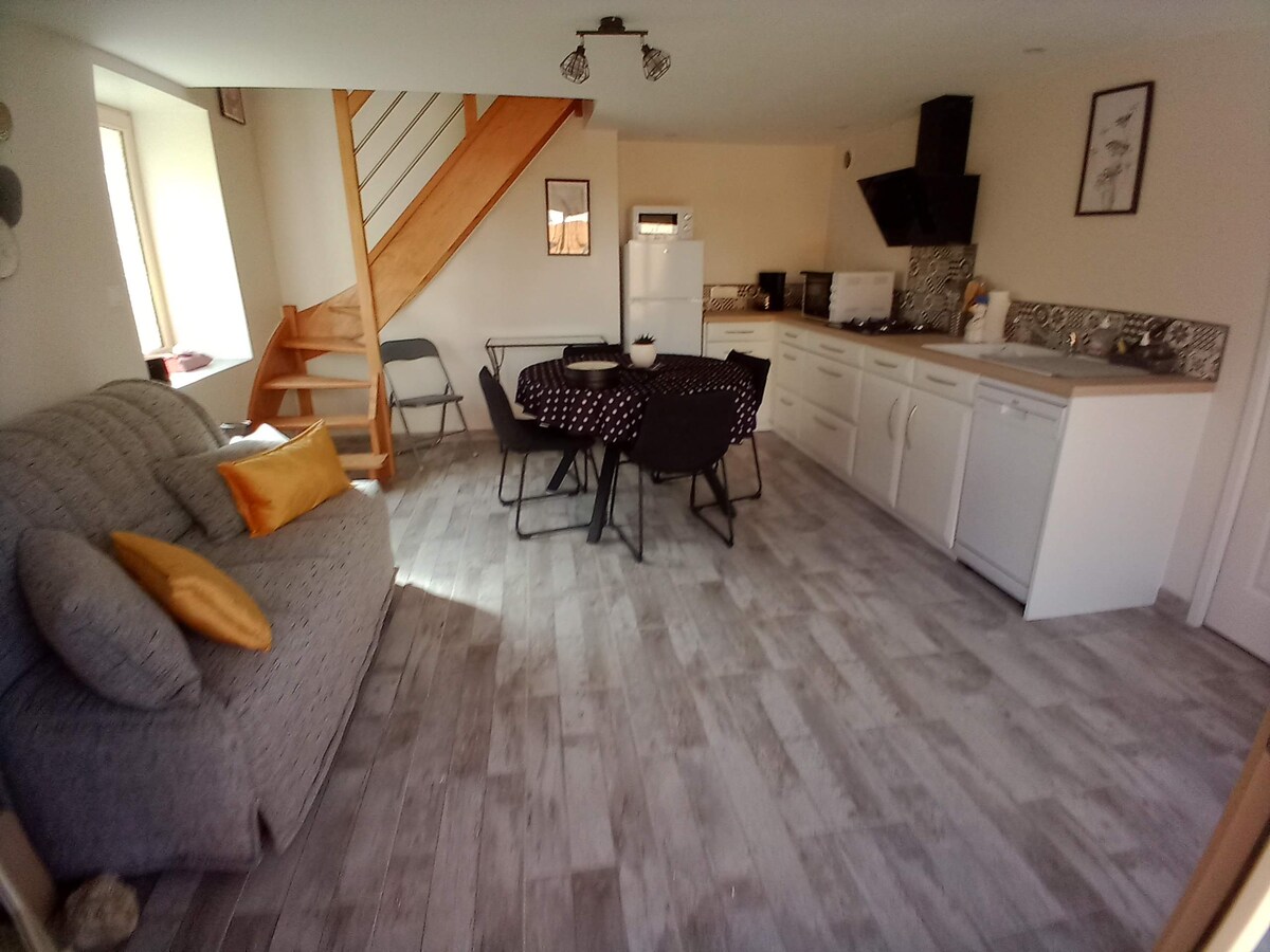 Pequeño alojamiento nuevo que incluye: - una cocina equipada (lavavajillas, vitrocerámica, horno, microondas, cafetera...) - una habitación con cama de 2 plazas - un altillo con cama de 2 plazas (apta para niños) - cuarto de baño (ducha) - terraza - televisión - internet - silla infantil bajo petición A solo 25 minutos de Angers y a 45 minutos de Le Puy du Fou. 17 minutos del zoológico bioparque de Doué-la-Fontaine. No se incluyen sábanas ni toallas, se cobrará un suplemento de 5 €/cama en el lugar si es necesario.