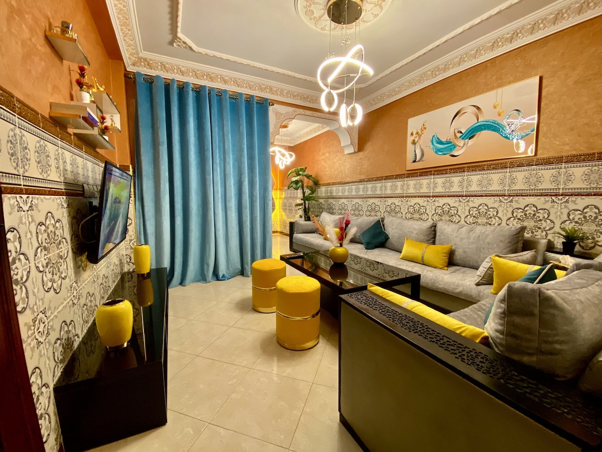 Amplio apartamento en Martil, norte de Marruecos, ideal para familias o estancias largas. Los puntos fuertes: -A 5 min de la playa, con 2 habitaciones, salón, cocina equipada, wifi de fibra, lavadora y piscina exterior. En el 1er piso con ascensor, está cerca de todos los comercios, restaurantes y transporte. -Comodidad, tranquilidad y ubicación ideal para explorar la región. Perfecto para teletrabajo, escapadas en pareja o vacaciones en familia. -Ambiente agradable y barrio seguro.