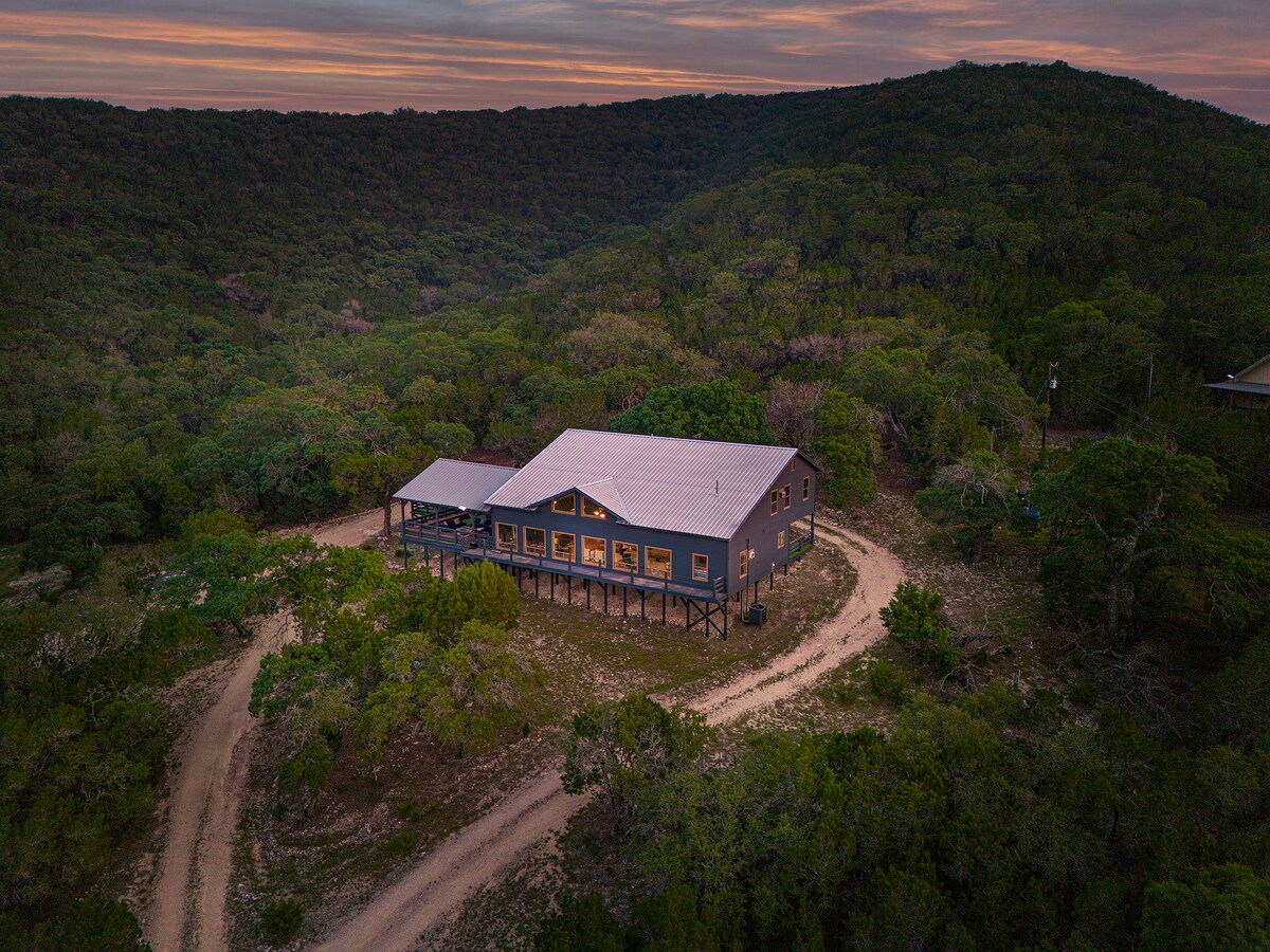¡Le damos la bienvenida a nuestro tranquilo oasis de 10 acres, que ofrece vistas espectaculares del Parque Estatal Garner y del río Frío! Promete un lujoso refugio inmerso en el impresionante ambiente natural, a solo 5 minutos del parque y del acceso al río. ¡El diseño único y las vibraciones relajantes harán que quieras quedarte para siempre! Piscina ✔ lujosa. ✔️ 6 habitaciones con capacidad para 20 personas ✔ Open Design Living Cocina ✔ completa. ✔ Sala de juegos ✔ Terrazas al aire libre (asientos) ✔ Propiedad (fogata, vida silvestre, parque infantil) ✔ Televisores inteligentes Wifi ✔ de alta velocidad