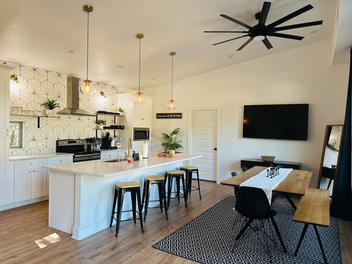 ¡Recién renovada! Esta espaciosa casa de 4 habitaciones y 2.5 baños en Bastrop, con 2,400 pies cuadrados, ofrece un verdadero refugio, a solo 30 millas del Aeropuerto de Austin. Relájate y diviértete con un spa de 14 pies, mesa de billar, futbolín, parrilla, tres televisores de 65 pulgadas y una encantadora terraza iluminada con cuerdas. A pocos minutos de las tiendas, restaurantes y parques del centro de Bastrop. Ideal para familias y grupos. Spa acuático disponible por $99 adicionales para toda la estadía.