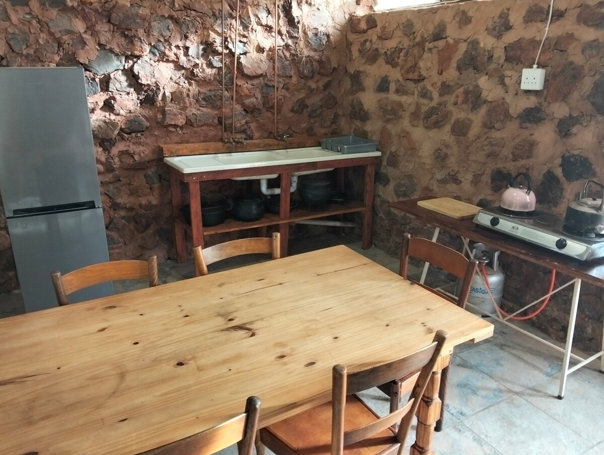 Matopos is a rustic rock-and-wood cabin set within a wild syringa forest on Grootfontein Private Reserve. Ideal for a getaway for a couple or small families. Surrounded by nature and mountain views, it’s a quiet space to slow down and settle in. The cabin features two en-suite bedrooms, a simple kitchenette, comfortable lounge, and braai facilities. Outdoors, unwind in the wood-fired hot tub and take in the stillness of the surrounding bush.