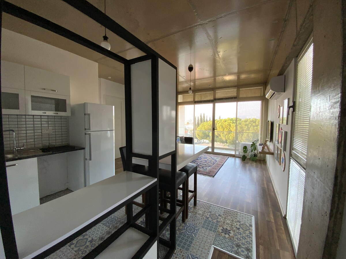 Bienvenido a su nuevo hogar tranquilo en el centro de la ciudad. Todas las habitaciones tienen vistas verdes y a la ciudad. El apartamento es de nueva construcción, totalmente equipado con cámaras de seguridad y todo el mobiliario es nuevo. Es ideal para parejas, familias y viajeros solitarios. Está cerca de la calle Dereboyu y de todas las zonas comerciales y tiendas. El Grand Pasha Nicosia Hotel & Casino & Spa está a 6 minutos a pie. El Merit Nicosia Hotel Casino & Spa está a 6 minutos a pie. Las murallas de la ciudad vieja están a 25-30 minutos a pie. Las paradas de autobús están a 5 minutos.