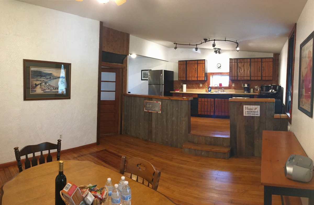 ¡Loft único de la iglesia en Savanna, IL! Refresca tu alma. Capacidad para 6 personas. 3 habitaciones únicas, estilo loft (sin techos/privacidad acústica) con camas tamaño queen. 1.5 BA con ducha de lluvia. Cocina completa, TV inteligente. Rincón de lectura, piano, fuente, juegos de arcade, mesa de póquer y más. ¡Patio trasero privado cercado y jacuzzi! ¡A 2 cuadras del centro de Savanna! Cerca del río para pescar y pasear en bote, senderos para bicicletas, senderismo (parque estatal), tiendas, restaurantes y 35 minutos a Galena. ¡Disfruta de una estadía verdaderamente histórica en un santuario!