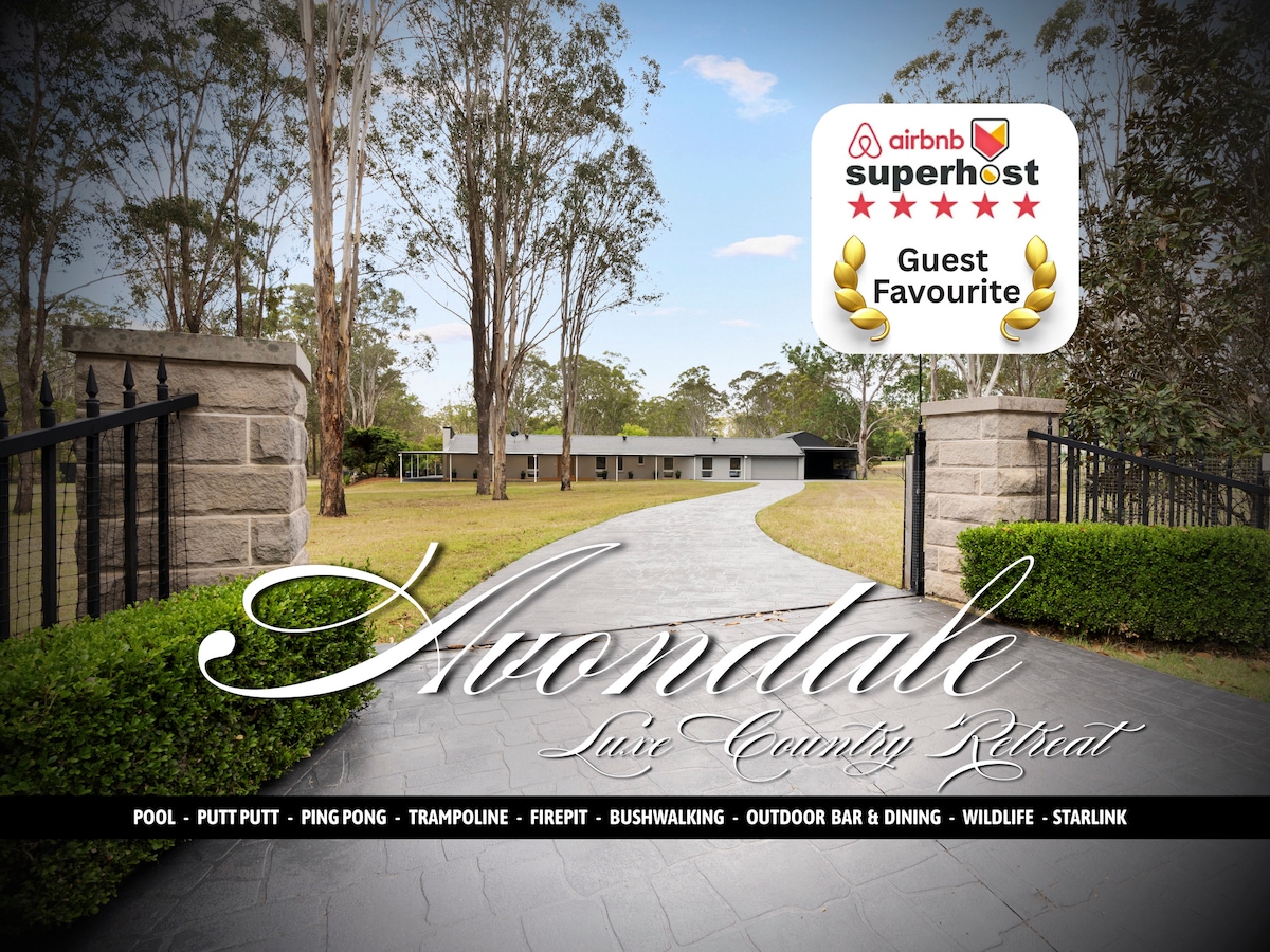 Luxe Country Lodge: retiro en la selva de Sídney. «Avondale» es un lujoso albergue rural de 5 dormitorios ubicado en el borde del impresionante «bushland» australiano. A poco más de 1 hora de Sídney y a 10 minutos de Windsor, Avondale te ofrece la combinación perfecta de relajación, comodidad y actividades para jóvenes y mayores. Olvídate de vecinos ruidosos y luces de la ciudad; aquí, las estrellas cobran vida en el cielo nocturno y la vida silvestre es abundante. NOTA: Avondale no es un destino para fiestas.