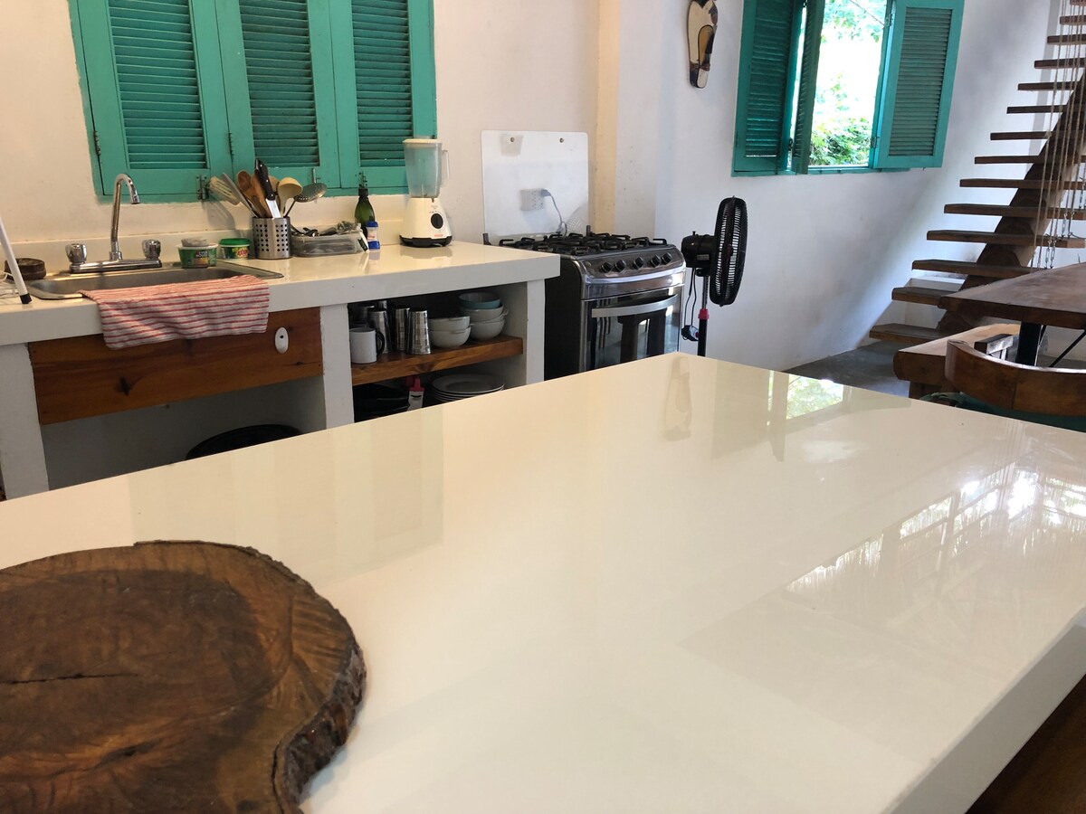 Una casa cómoda, privada, ecológica y muy acogedora. Ubicada en un paraíso natural sobre el mar y rodeada por la selva tropical. Si eres amante de la naturaleza estas en tu salsa... Playa, aves, monos , vista exuberante y meditación en privacidad y tranquilidad, ideal para descansar. Estamos equipados con paneles solares que garantizan un suministro continuo de energía eléctrica, sin interrupciones, para una estancia sin preocupaciones. Además, contarás con Wi-Fi disponible todo el tiempo.
