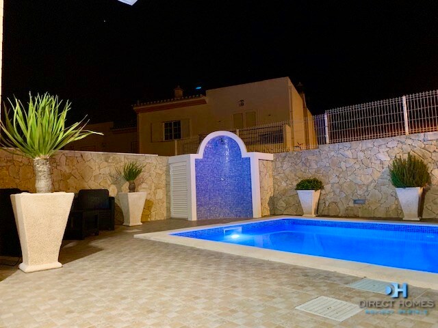 Villa de 3 dormitorios con Brnad nueva con piscina de calefacción privada incluida en el precio, esta te ofrecerá todo lo que puedas necesitar para tus vacaciones relajadas en el centro de Albufeira con barbacoa + WIFI gratuito y 3 dormitorios 2 con 2 camas individuales cada una +1 con cama doble +1 sofá cama en la sala de estar máximo 7 perones + 2 baños completos en el primer piso, una azotea fantástica para disfrutar de tus puestas de sol, a pocos pasos tendrás a poca distancia de supermercado +restaurantes+ bares y el famoso Strip de Albufeira