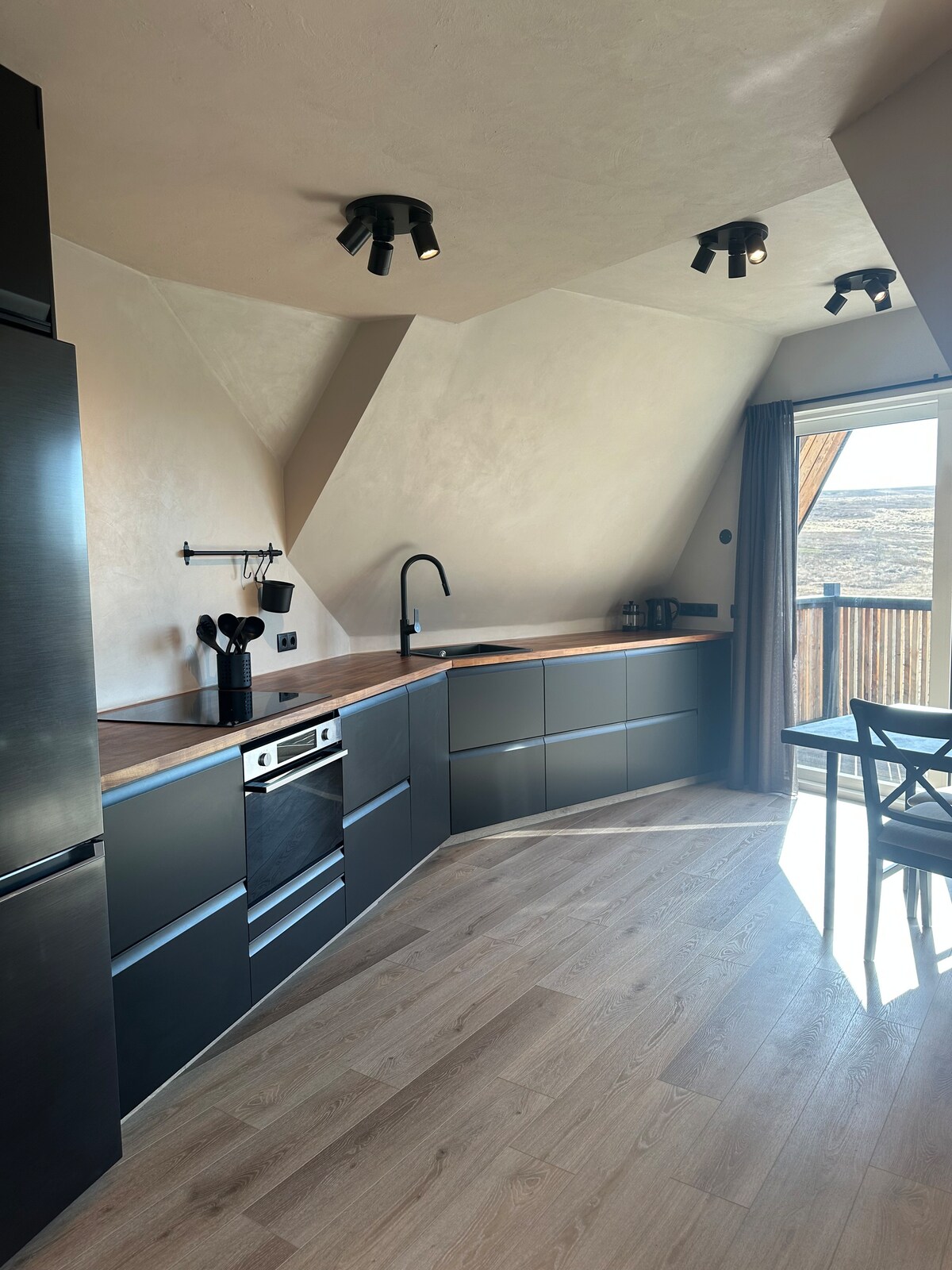 El apartamento es una parte del complejo de casas en Sunnuhlíð, una tierra agrícola cerca de la ciudad de Akureyri. El apartamento es perfecto para cuatro adultos, dos parejas o familias que viajan por su cuenta. Los huéspedes pueden disfrutar de la hermosa vista de Eyjafjörður y Akureyri. La tarifa adicional por más de dos huéspedes es de 18 € por huésped y por noche.