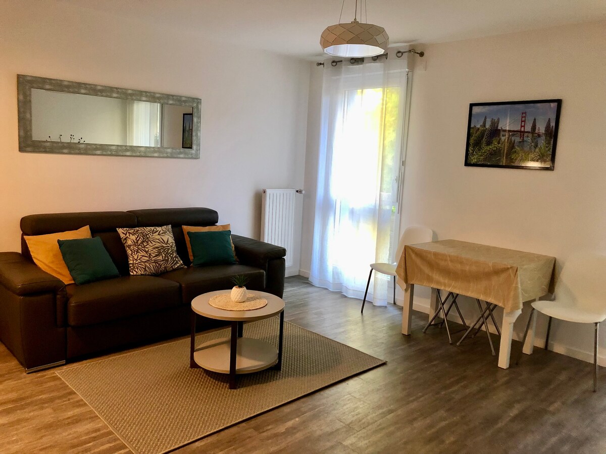 Bienvenido al apartamento de aproximadamente 65 m2 situado en la planta baja de nuestra casa, un verdadero oasis de tranquilidad en el campo en la ciudad situada en el corazón de Thorigny-sur-Marne. El alojamiento ofrece un ambiente cálido para tu estancia en la región. Te beneficias de wifi de alta velocidad, TV de pantalla plana cromada, sábanas, toallas y gel de ducha a tu disposición, así como todos los servicios básicos que puedas necesitar durante tu estancia.