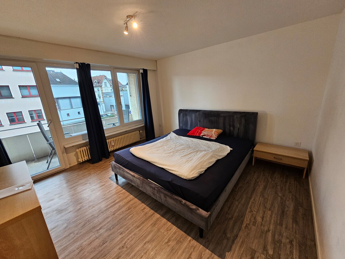 Bright 70 m² 3½-room apartment in Herisau with beautiful rooftop views. Perfect for families or groups, it features two bedrooms with a double bed (180x200 cm) and two singles (80x200 cm), plus a sofa bed (165x195 cm). Enjoy an open-plan living area, fully equipped kitchen with tea/coffee maker, modern bathroom with shower, separate sitting area, and work desk. Wheelchair accessible for added convenience.