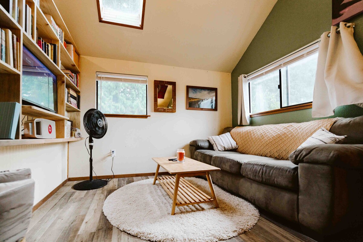 No se permiten animales/mascotas. Ubicado en la ciudad, a 4 minutos en auto del centro de Olympia, esta es una base de casas muy popular para explorar el noroeste del Pacífico, o si estás en la ciudad por motivos de trabajo. Muy cerca del Edificio Capital, las oficinas estatales, el centro de la ciudad y todas las comodidades. Remodelada en 2019, hay una cocina completa con muchas opciones de desayuno y aperitivos. El extenso baño tiene pisos climatizados, una ducha de 5 pies y una lavadora-secadora de tamaño completo Samsung.