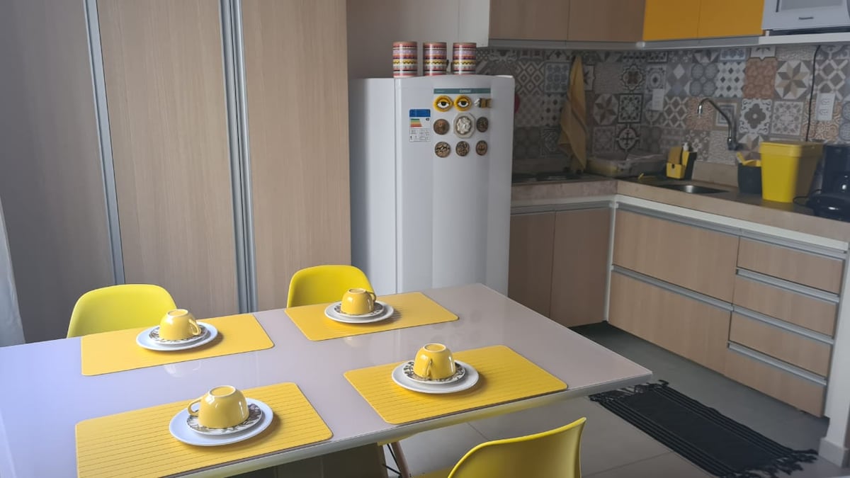 Apartamento nuevo y acogedor, con balcón para piscina en una comunidad cerrada, con varias piscinas, estacionamiento interno giratorio y muy cerca del centro de Pipa. Tenemos una cocina equipada con todos los utensilios.