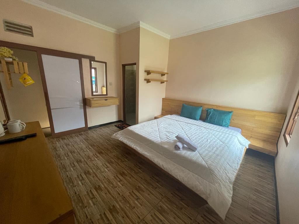 Enjoy a peaceful stay in this private 2-bedroom villa in the cool Bromo area, perfect for families and small groups. The villa offers two king beds and one double bed, providing comfortable sleeping space for everyone. Surrounded by fresh mountain air, it’s a quiet retreat after exploring Bromo’s sunrise views and natural attractions. A cozy living and dining area makes it ideal for relaxing and spending quality time together.