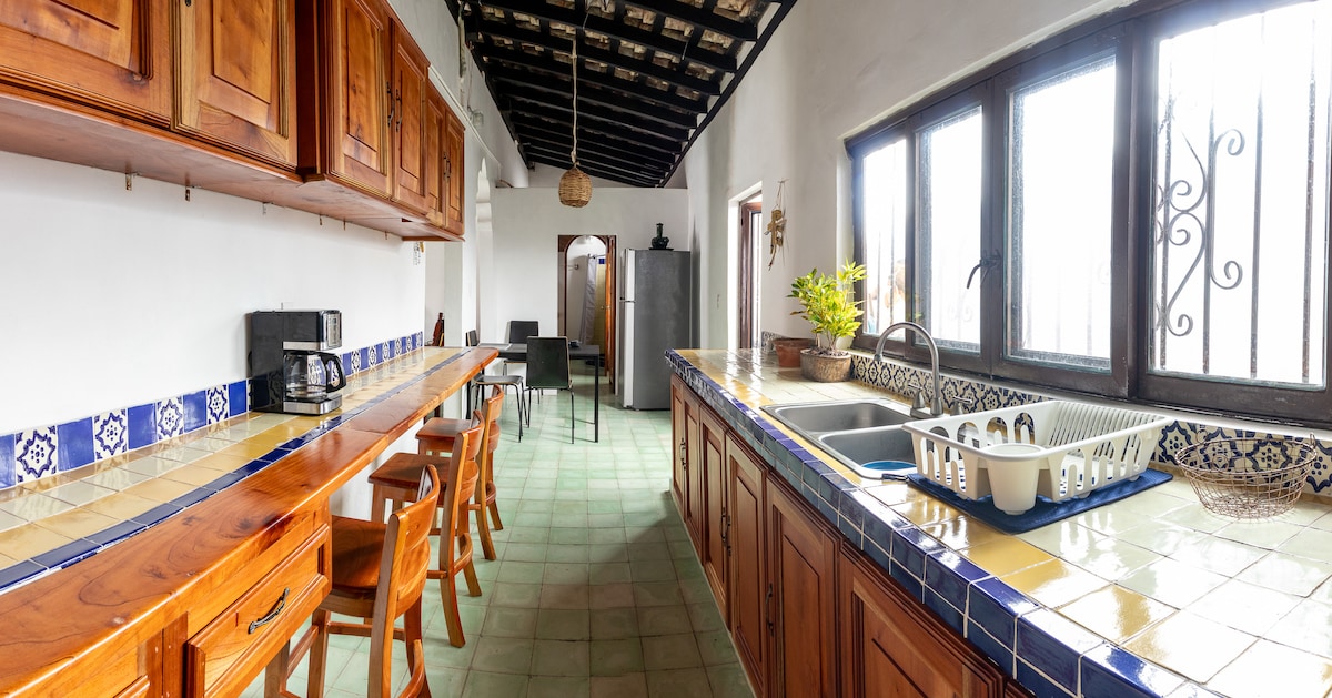 Una casa tradicional con más de 100 años de historia. Dos habitaciones espaciosas con aire acondicionado en cada cuarto. Una sala central grande con televisión y dos conexión de wifi disponible. La casa tiene un baño con regadera tocador y agua caliente. La cocina tiene estufa de gas, refrigerador y microondas disponible. La casa esta en una zona céntrica de Tlacotalpan para que puedas caminar a cualquier punto. Igualmente tenemos dos bicicletas que se puede utilizar para explorar!