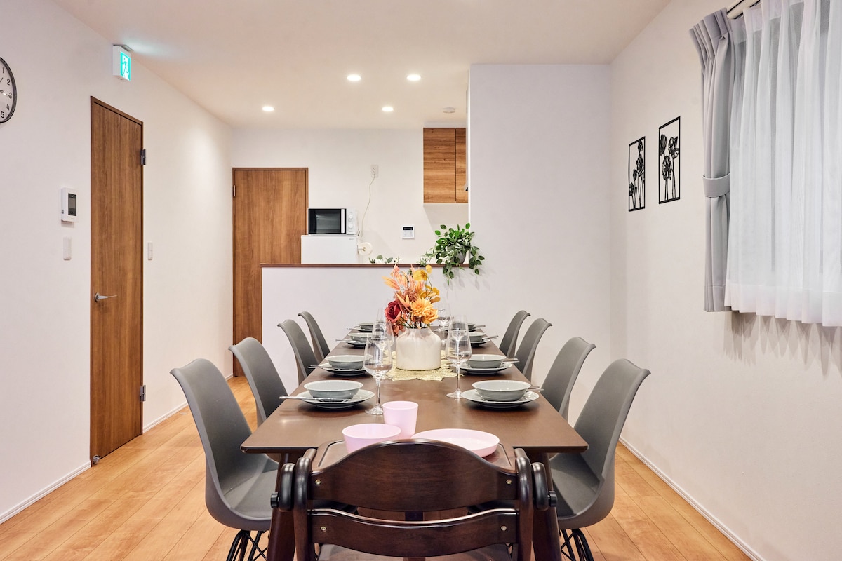 ¡Casa entera de nueva construcción convenientemente cerca de la estación sin traslados desde Haneda y el aeropuerto de Narita! La sala de estar tiene aproximadamente 12 tatami de tamaño, lo que te hace sentir como en casa. Todos los muebles y electrodomésticos son nuevos y de alto rendimiento. La ropa de cama se cambia después de cada limpieza. Hay una secadora de baño, lavavajillas y baño, así como un cuarto de ducha y dos lavabos y 2 lavadoras. Ideal para grupos grandes y estadías largas.