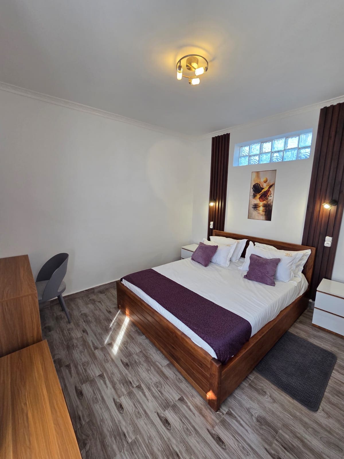 Disfrute de un entorno elegante y refinado para una estancia inolvidable en Tuléar. Esta suite exclusiva te ofrece todo el confort que te mereces: sala de estar, aire acondicionado, TV, wifi, un baño con jacuzzi privado y una gran terraza para momentos de relax absoluto.
